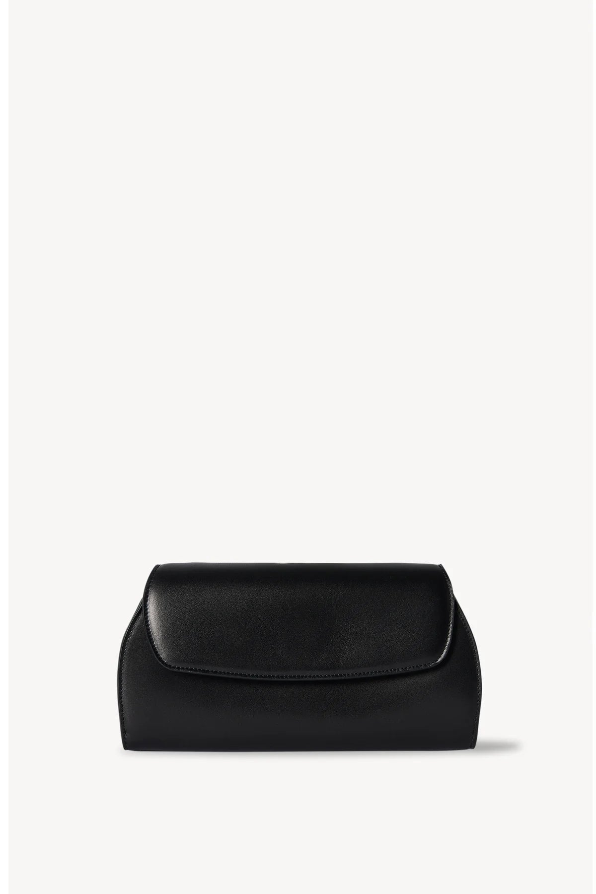 Sculptural and precise, the Curved Clutch is crafted in matte black box calf leather with a clean, architectural presence. The refined silhouette is defined by gusseted side panels and a curved top flap with a concealed magnetic closure. Inside, discreet card slots and a zip pocket offer considered functionality, while the smooth lambskin lining enhances the clutch’s quiet luxury. The leather’s structured hand and matte finish underscore The Row’s signature restraint and modern elegance.