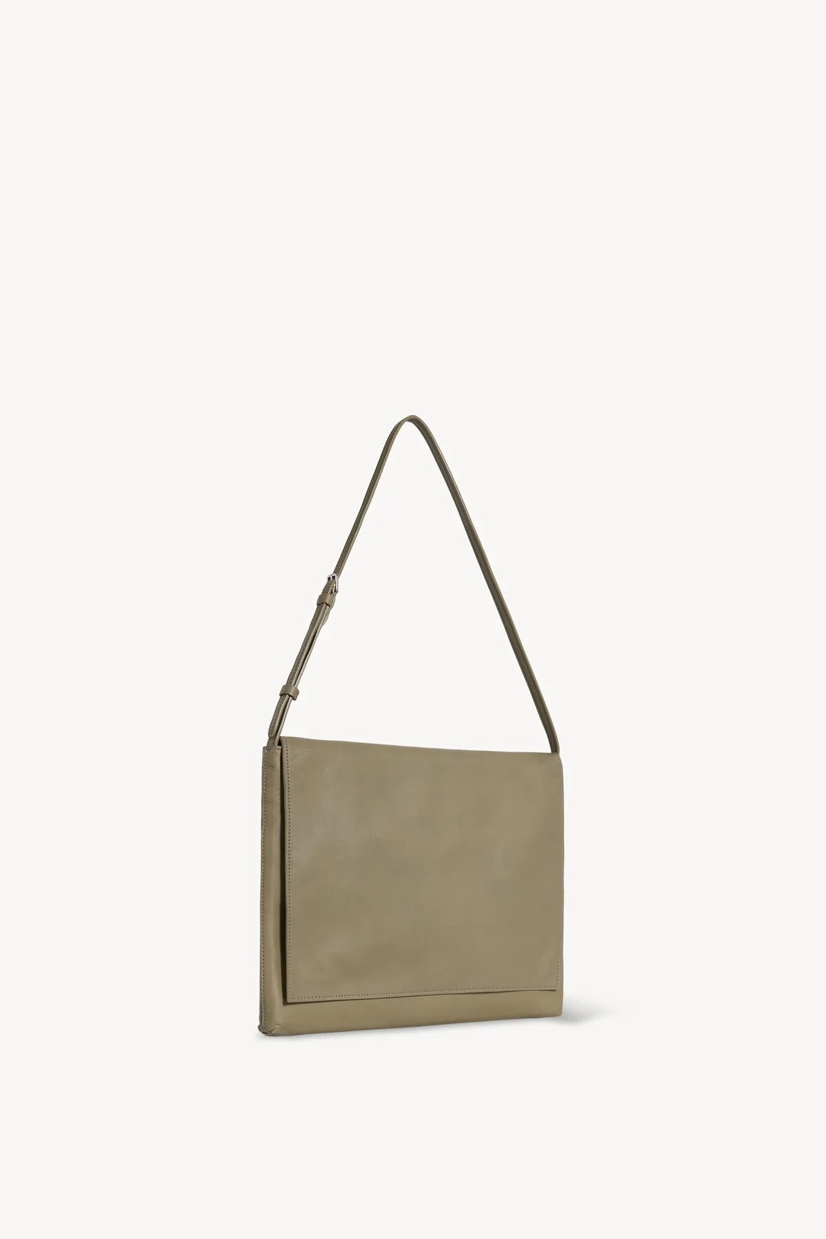 Minimalism elevated — The Row’s Nan Shoulder Bag in soft sage lambskin is a study in refined proportion and tactile luxury. Crafted in supple, buttery leather, this compact silhouette features an overlapped front flap, a removable interior zip pocket, and an adjustable strap with a discreet metal buckle for a tailored fit. Lined entirely in leather and meticulously made in Italy, the Nan captures The Row’s signature quiet sophistication and functional elegance.