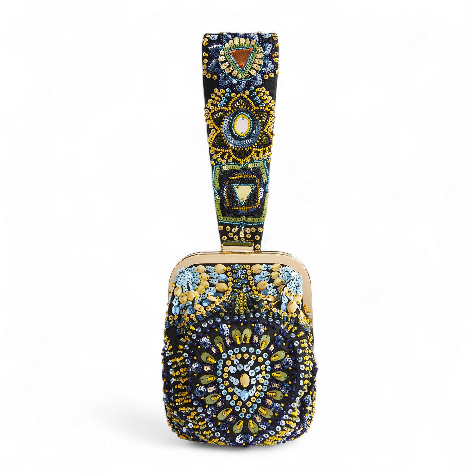 If bold sparkle had a soulmate, it would be the Palazzo Mini Bag. Embroidered to the nines in a symphony of sequins, glass beads, and vibrant threads, this over-the-wrist pouch brings maximal glamour to minimal size. Perfect for parties, weddings, and any excuse to shine, it fits your phone and keys with ease—while turning every head in the room. Slip it on and let the compliments roll in.