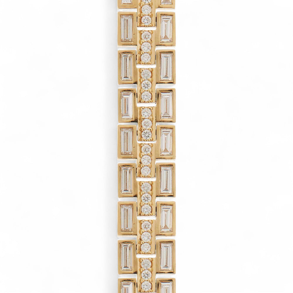 Be enthralled by the beauty of the Ileana Makri Baguette Collection. Inspired by the classic baguette-cut diamond, its simple and clean lines are offset by the subtle variations in the stones' settings, for a look that is simultaneously sophisticated and laid-back. Create interesting contrasts with the playful interaction of black and yellow gold, ideal for wearing alone or stacking for a more voluminous effect.
