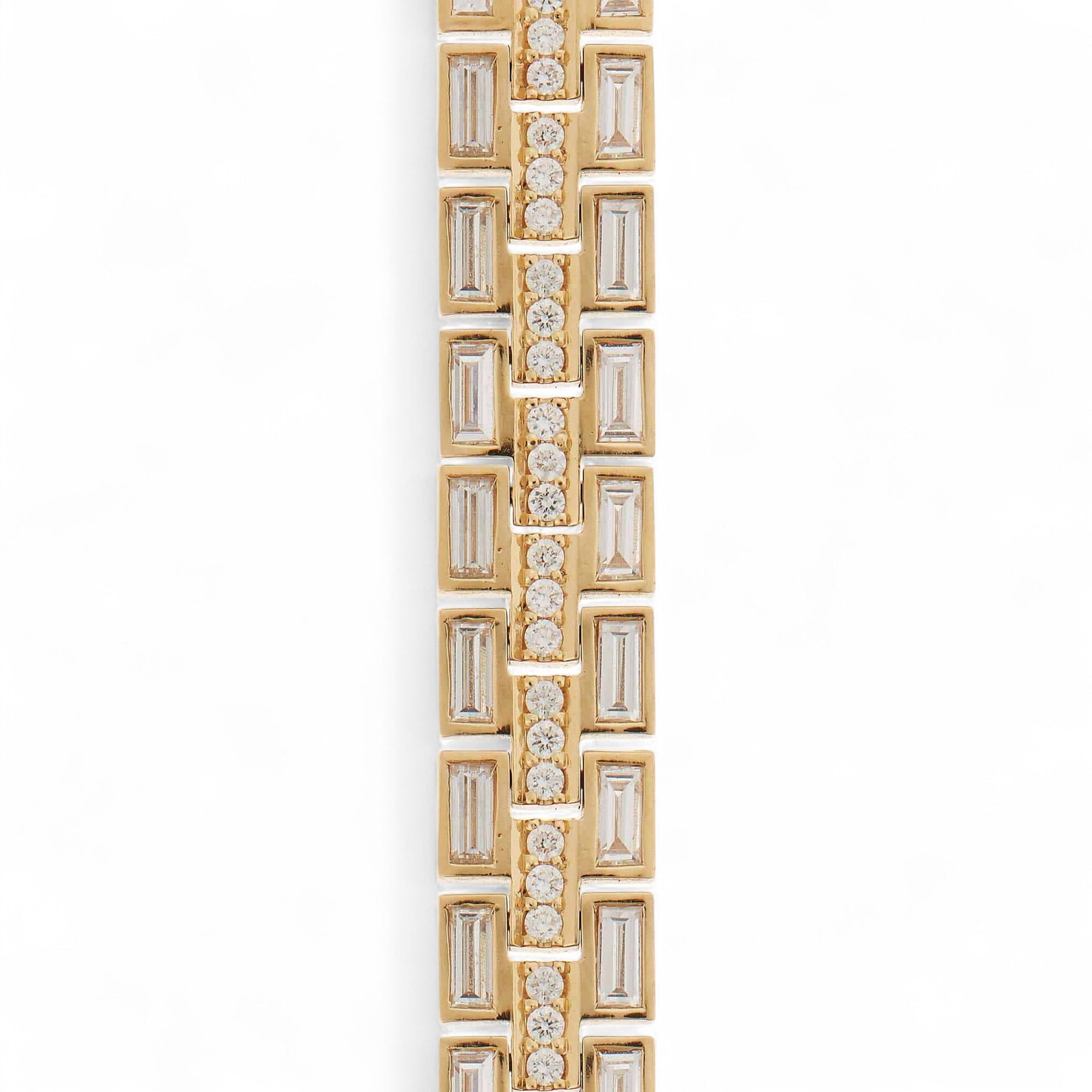 This Baguette Dream Bracelet Y-D is a work of art exquisitely handcrafted from 18k yellow gold. Refined with two rows of brilliant white diamond baguettes and a row of glimmering pave round white diamonds, it is sure to be the finishing touch to any luxurious look.