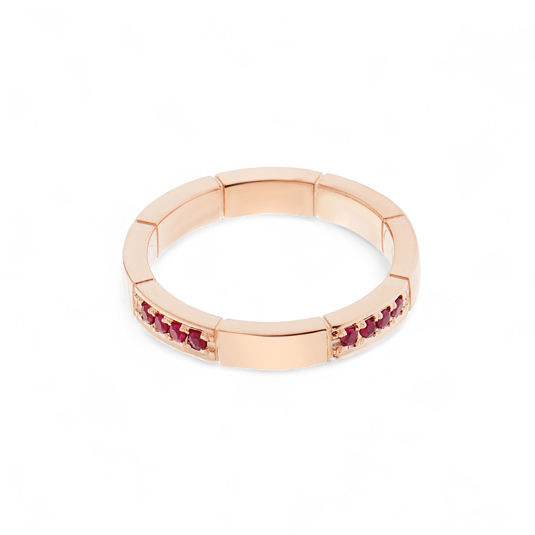 Make an elegant statement with our Stream Ring . Crafted from 18k rose gold for a timeless look, the minimal silhouette is set with sparkling rubies to create a beautiful harmony. Perfect for stacking with other favorite rings.