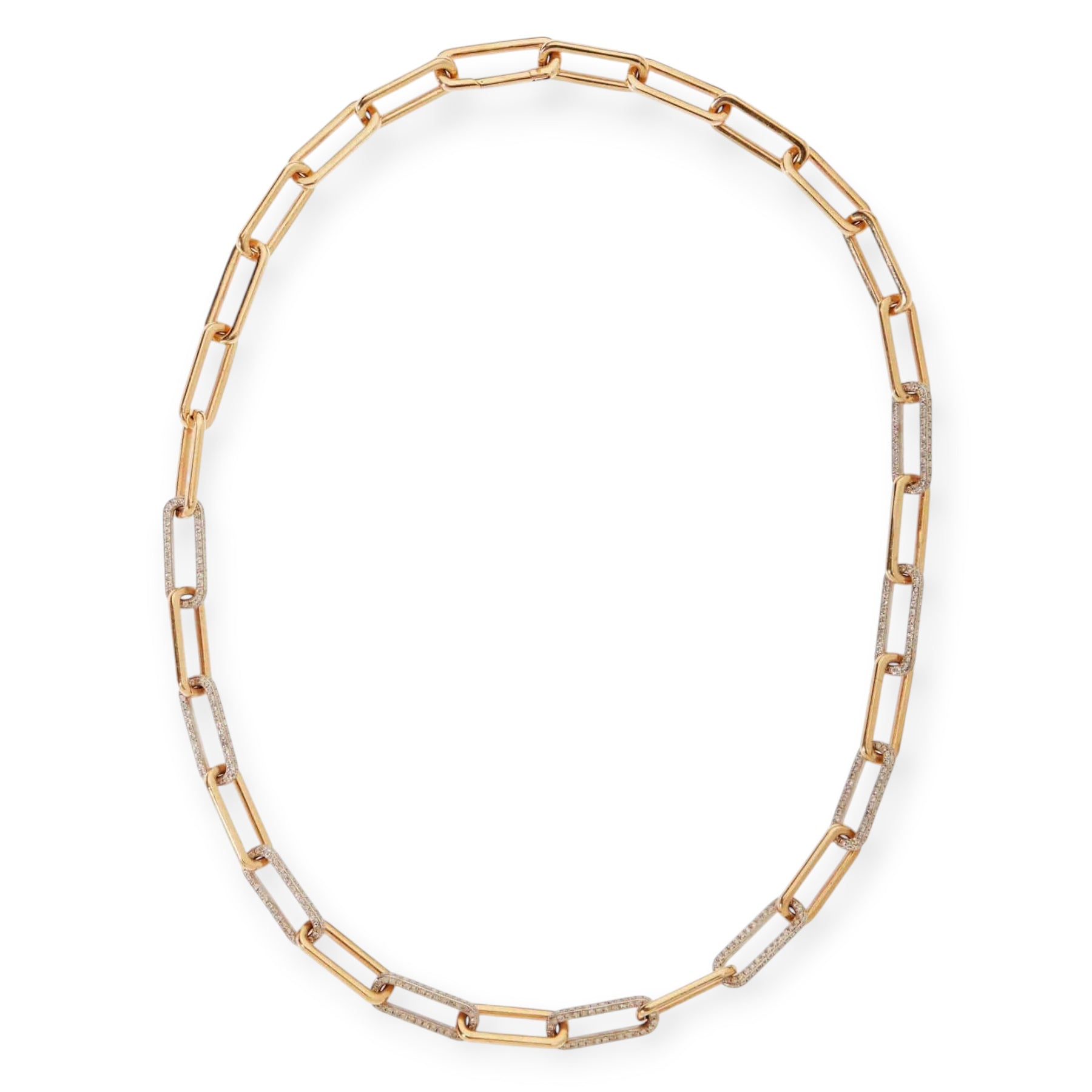 Crafted with precision, the 18k Seamless Oblong Diamond Link Necklace 45cm boasts elegance with mixed 18k yellow and white gold links. 18k yellow gold oblong links intertwine with nine pave-set white diamond links in 18k white gold. The seamless invisible link closure ensures both security and timeless style in this masterpiece of minimalism.