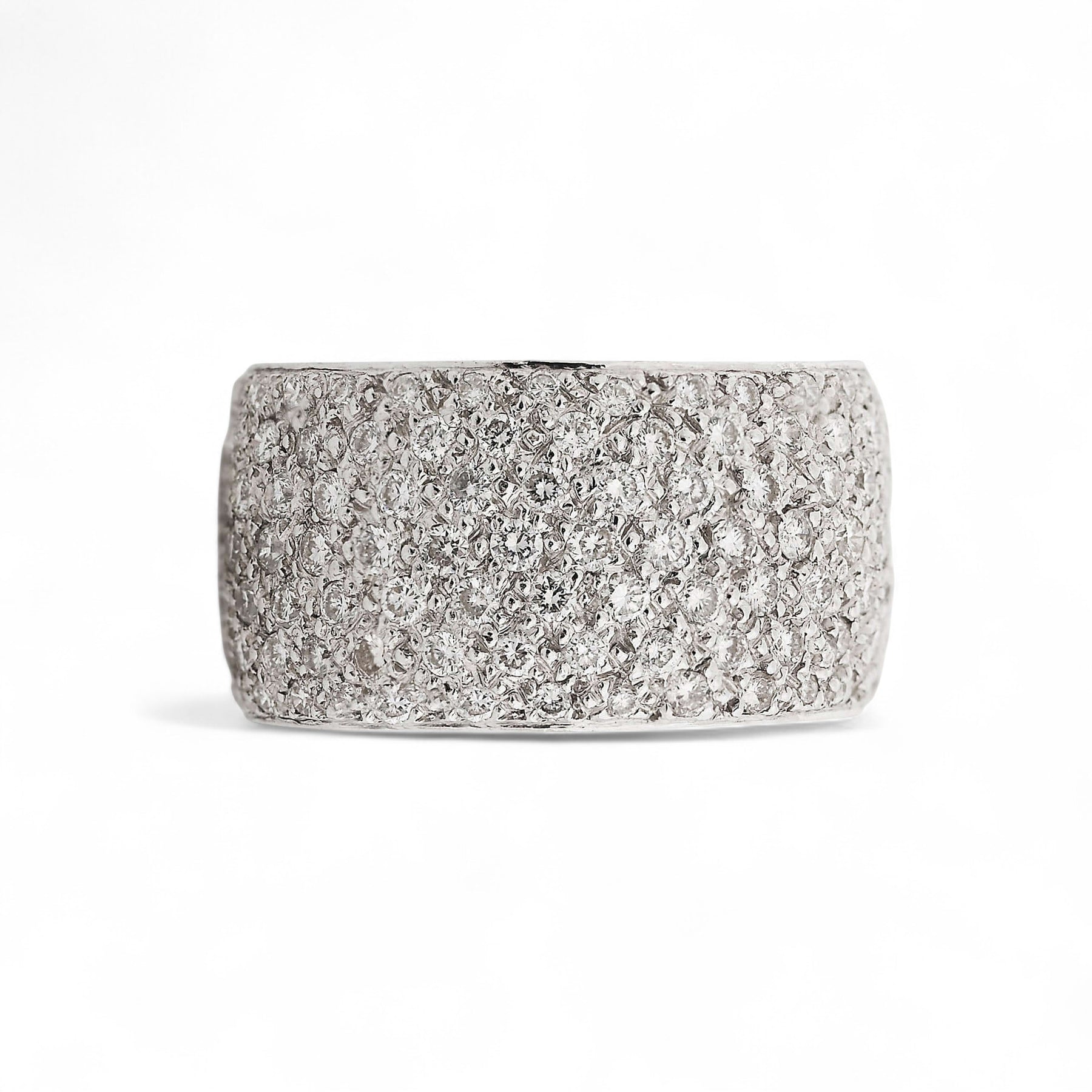 A timeless expression of sophistication, Ileana Makri’s Bond Ring is handcrafted in polished 18k white gold and fully pavé-set with brilliant white diamonds totaling 2.38 carats. Its bold, sculptural cigar-band silhouette radiates strength and elegance, designed to capture light from every angle. Symbolizing enduring love and connection, this exquisite piece makes a striking choice for marking life’s most meaningful moments—from weddings to anniversaries and beyond.