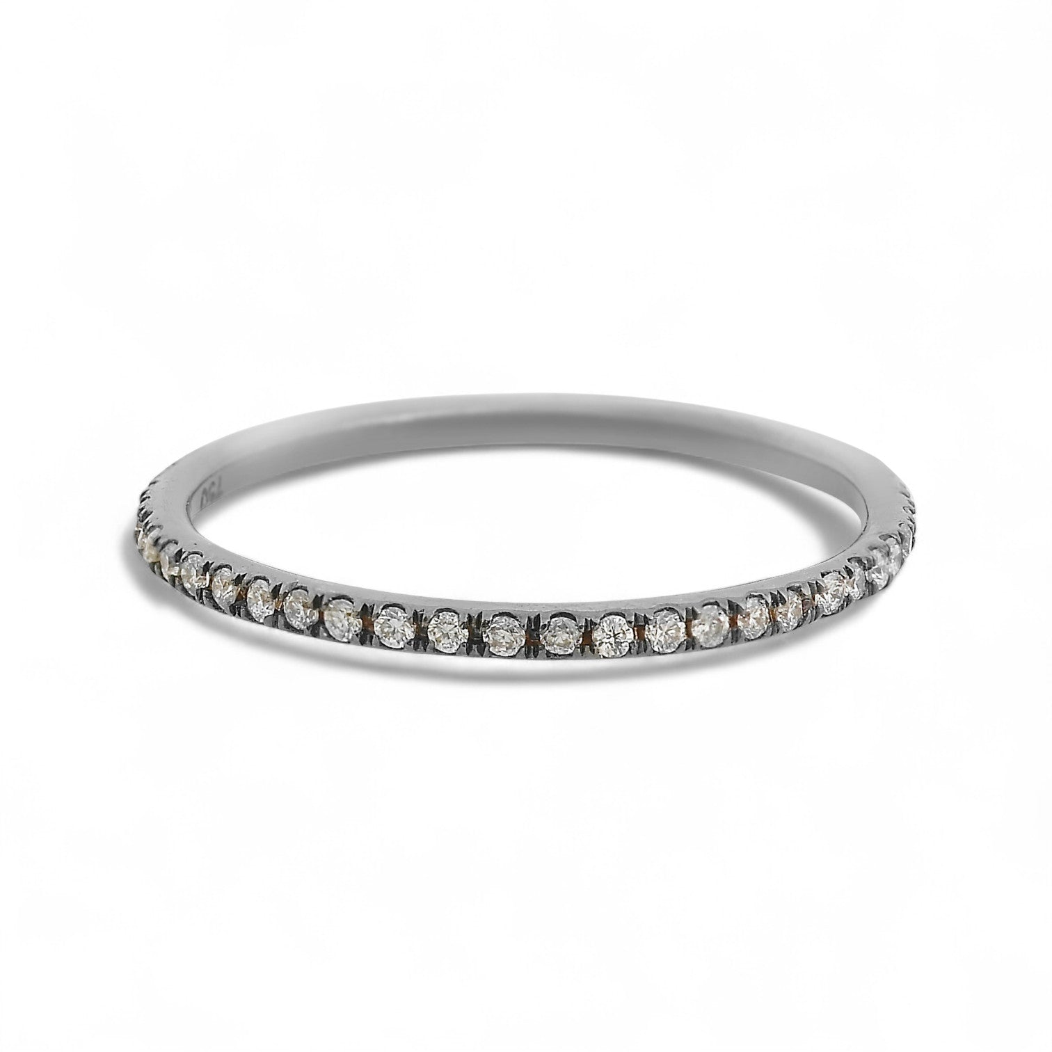 A timeless symbol of commitment and dedication, the Thread Band is the perfect reminder of your love. Crafted from 18-karat blackened gold, it features a stunning unbroken row of white diamond stones of total 0.28 carats. An elegant accessory to mark a special anniversary or proposal.