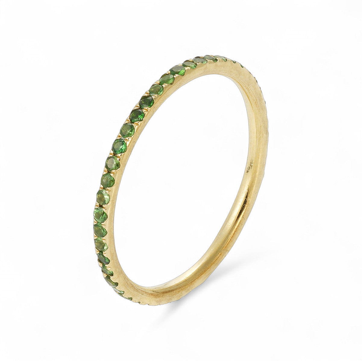 Say 'I Love You' with our timeless Thread Band. Crafted from 18-karat gold and embedded with 0.31 carats of captivating tsavorites, this sophisticated handmade piece provides a luxurious way to commemorate a special occasion or celebrate your everlasting love.
