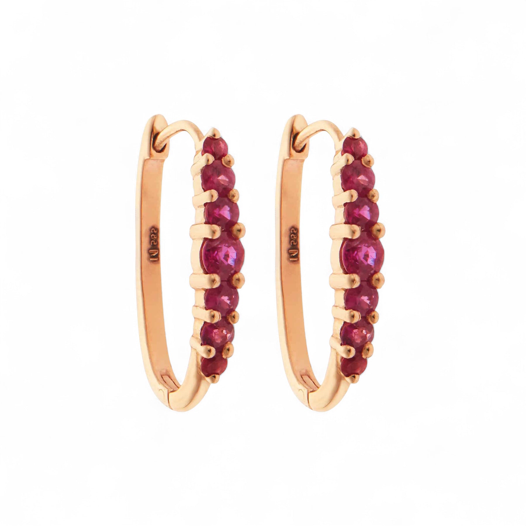 Elevate your style with these exquisite Large Oval Hoops. Handcrafted with a blend of 14k rose gold and embedding seven dazzling rubies, these earrings will add a luxurious and sophisticated touch to any ensemble. Enjoy the refinement and elegance they bring to any occasion.
