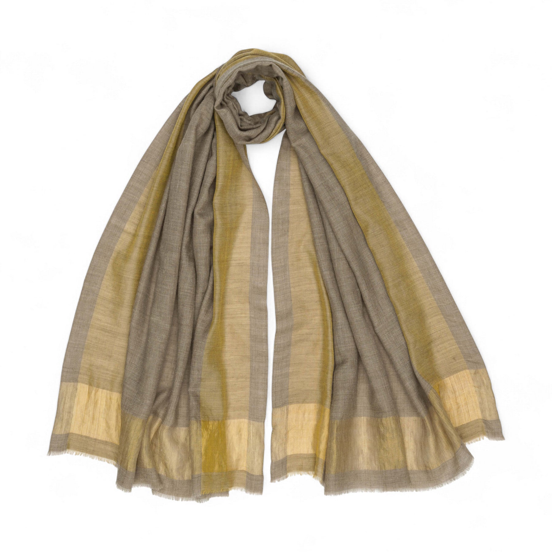 A luxurious scarf crafted from super-fine cashmere and adorned with lurex stripes. An understated yet refined addition to elevate both evening and daytime outfits.