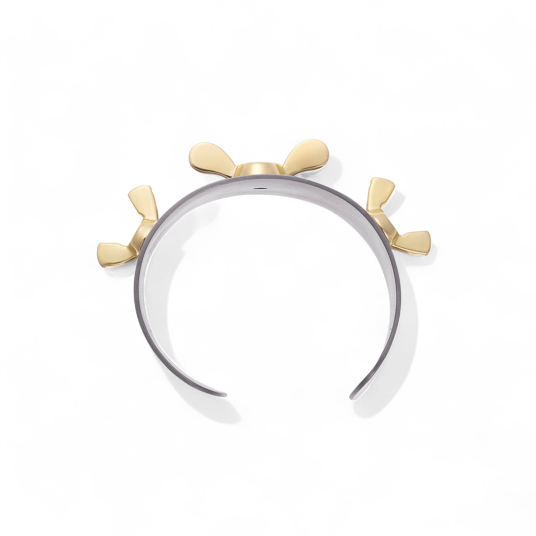 A bold interplay of strength and sophistication, the Butterfly Screw Cuff from Divine Mechanics transforms functional hardware into a statement of sculptural beauty. Handcrafted from oxidized sterling silver and adorned with three 18k yellow gold butterfly screws, this striking piece embodies Ileana Makri’s vision of elevating the everyday — turning tools of utility into symbols of elegance, resilience, and refined craftsmanship. A true modern talisman that celebrates the artistry hidden in the essentials of life.