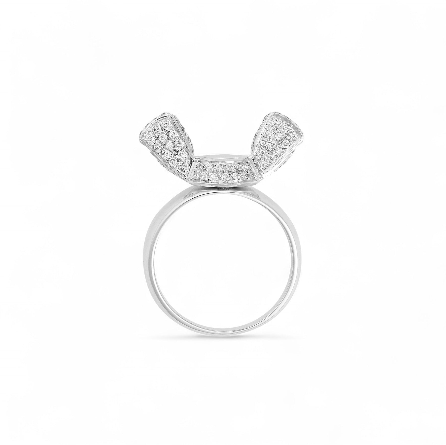 A statement of ingenuity and grace, the Butterfly Screw Ring from Divine Mechanics redefines utility as luxury. Handcrafted in polished 18k white gold and fully set with pavé white diamonds, this sculptural ring features a functional “butterfly screw” top that elegantly twists on and off — a nod to mechanical precision reimagined through a poetic lens. Designed to celebrate the beauty in the overlooked, it captures Ileana Makri’s fascination with the tools that quietly hold our world together, transforming them into radiant symbols of connection and artistry.