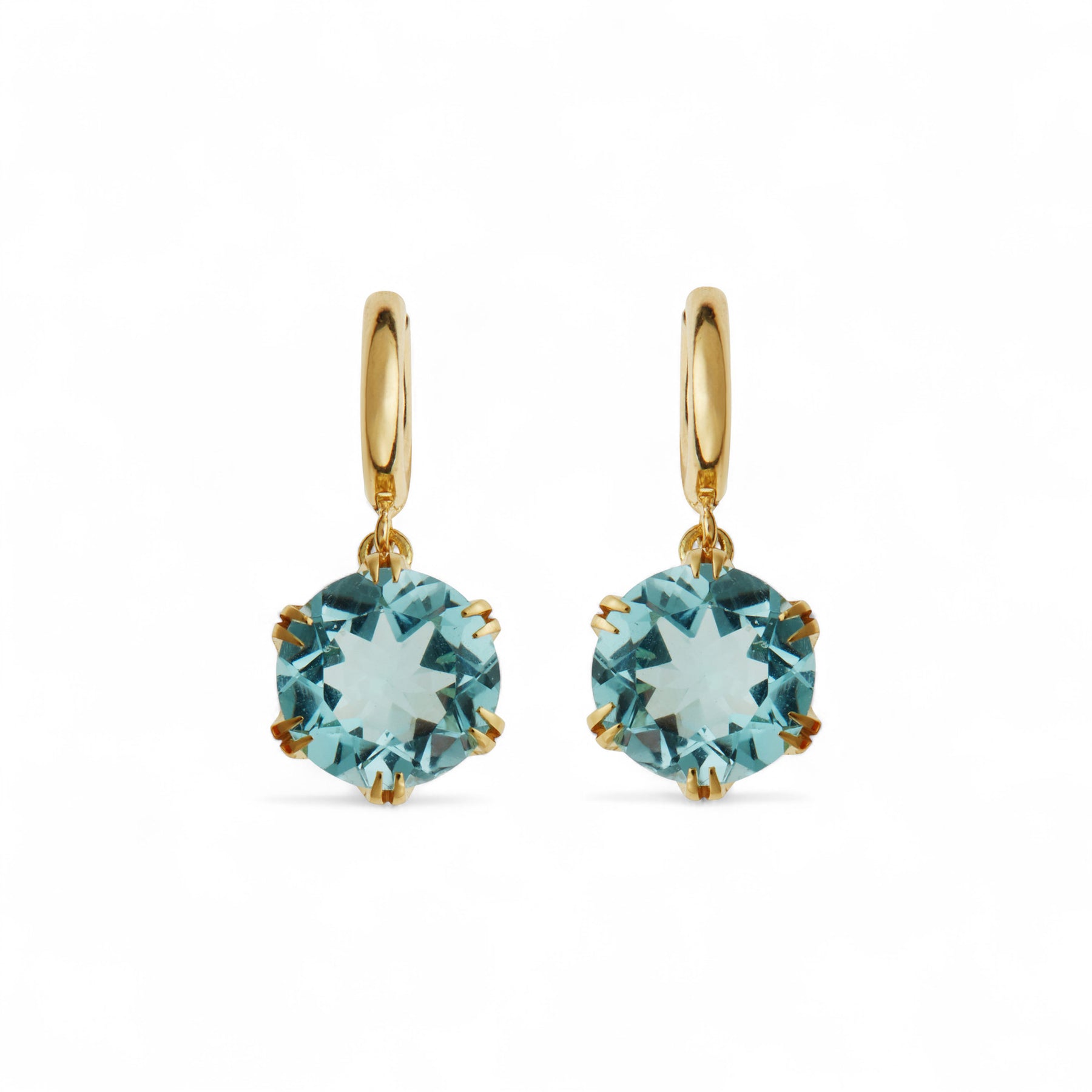 Expertly crafted with Ileana's Signature Midi Hoop design, these Crown Midi Hoops in 18k yellow gold are adorned with a dangling Blue Topaz that rests in a crown setting, these lightweight earrings are perfect for everyday wear.