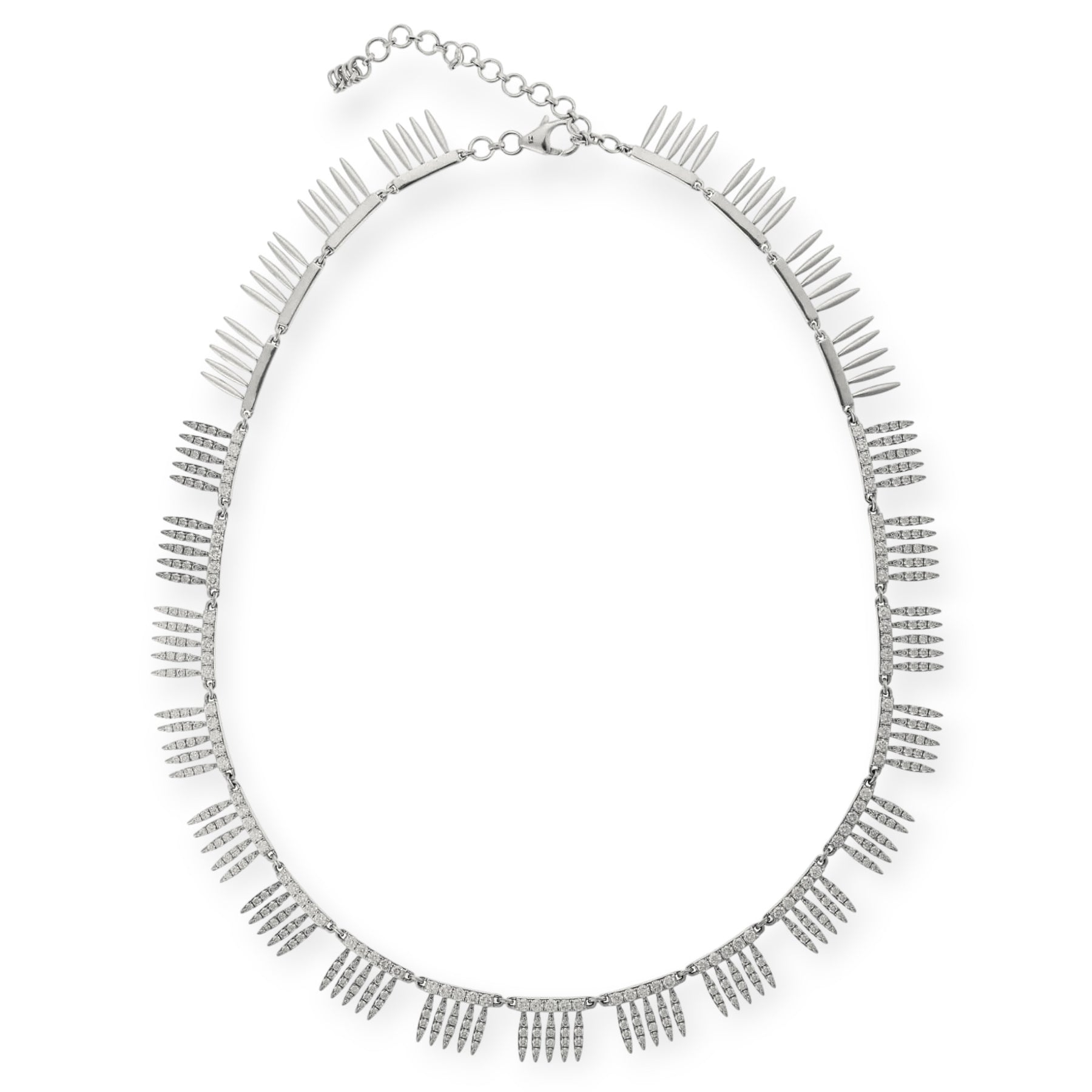 Enhance an exquisite, everyday look with this beautiful Grass Sunny Diamond Leaves Necklace W-D. Delicately handcrafted in 18k white gold, this lovely piece sparkles with pave-set white diamonds, capturing the elegance of grass swaying in a summer breeze. An elegant and tasteful statement piece, it will bring a refined and luxurious touch to any outfit.