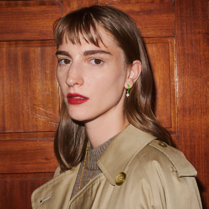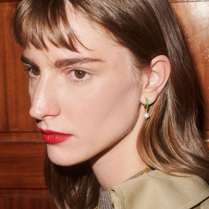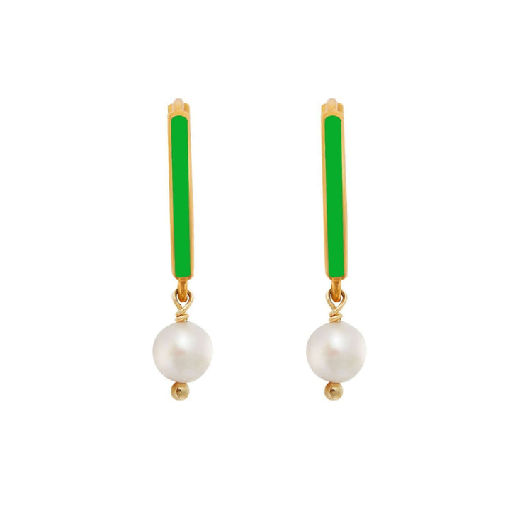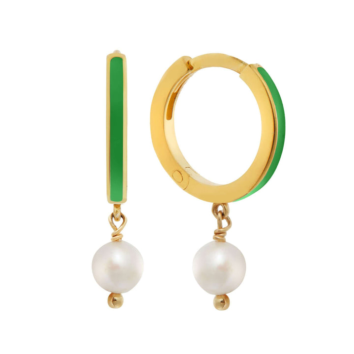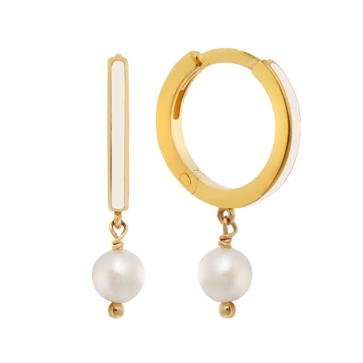 Capture the timeless elegance of pearls with these dainty and dramatic hoops! Combining classic freshwater pearls and sleek enamel, these modern earrings will make you the envy of your friends. No need to worry about them falling out of style - they'll always be chic and ready to stun. Rock 'n' roll in style!