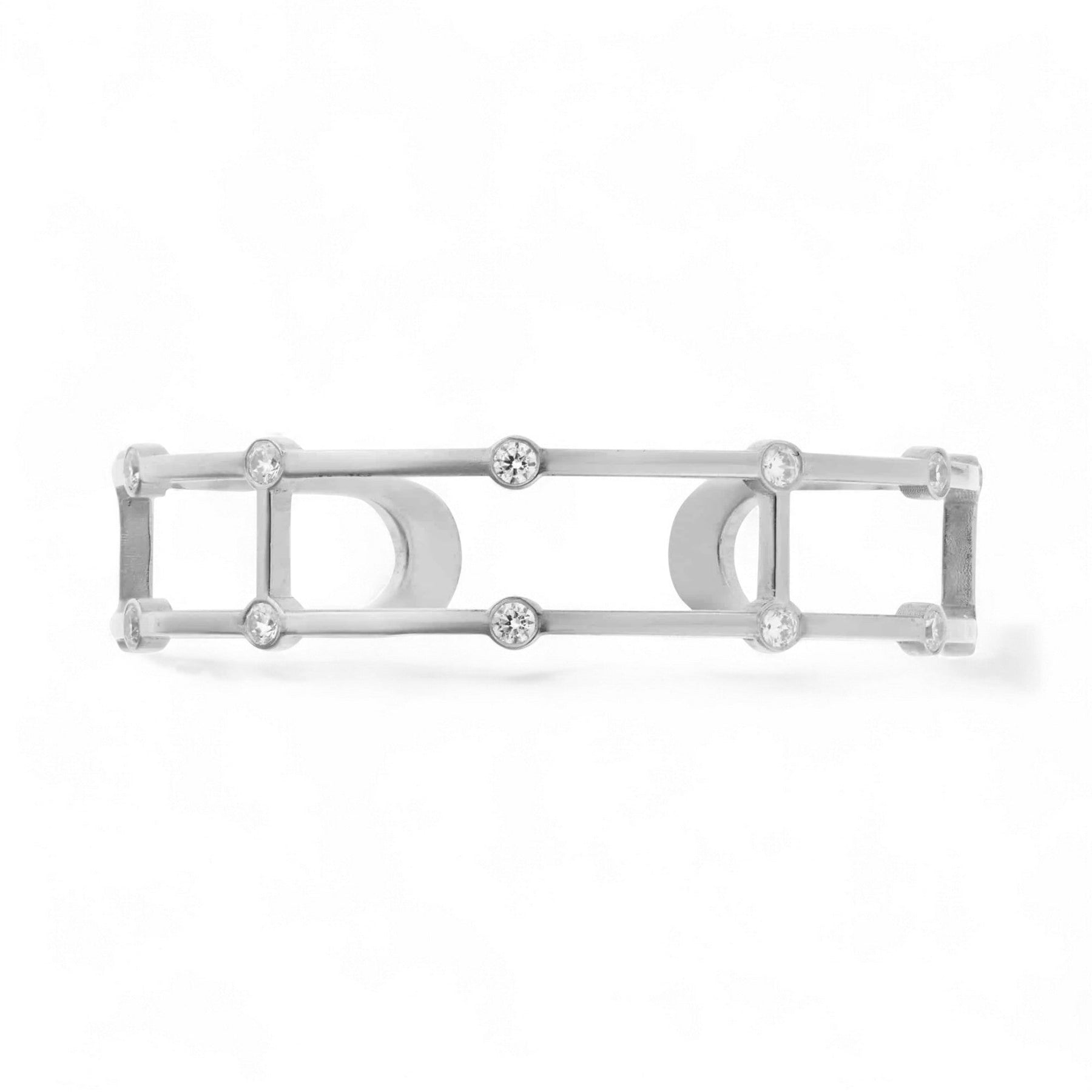 Add some sparkle to your everyday look with the Line Cuff ! This handcrafted sterling silver cuff is dazzlingly decorated with shimmering zircons that will never go out of style. Shine on!