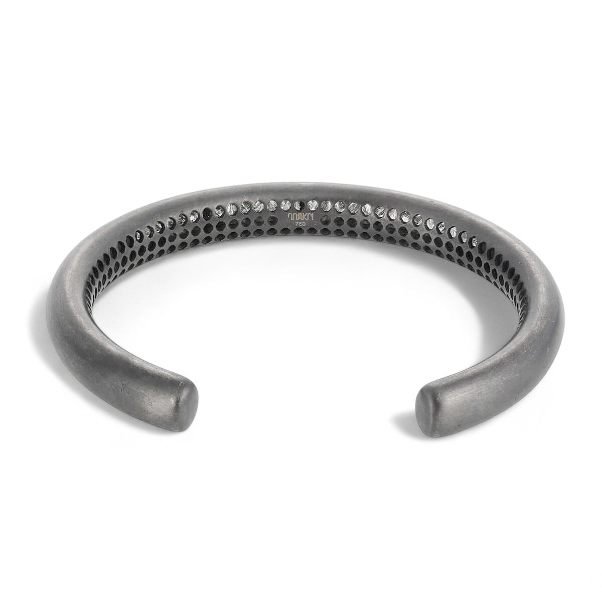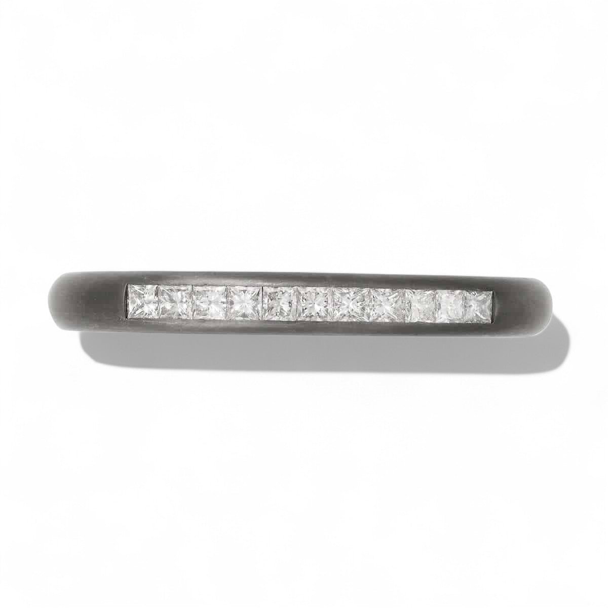 Our 18k oxidized white gold Princess Cuff exudes royalty with its sophisticated design and dazzling central row of princess cut white diamonds totalling 4.52ct. Crafted with striking attention to detail, this cuff creates a look of effortless elegance and timeless luxury.
