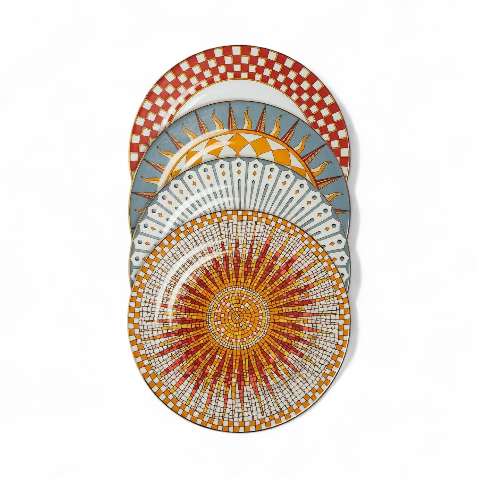 Add a touch of playfulness to your dining experience with our Solar Dessert Plates! Handcrafted by Ancap, each set of 4 features hand painted 18k gold trims and unique designs inspired by the warm sun of Andalusia. Perfect for dessert or as a decorative piece, these plates make a jolly addition to any home.