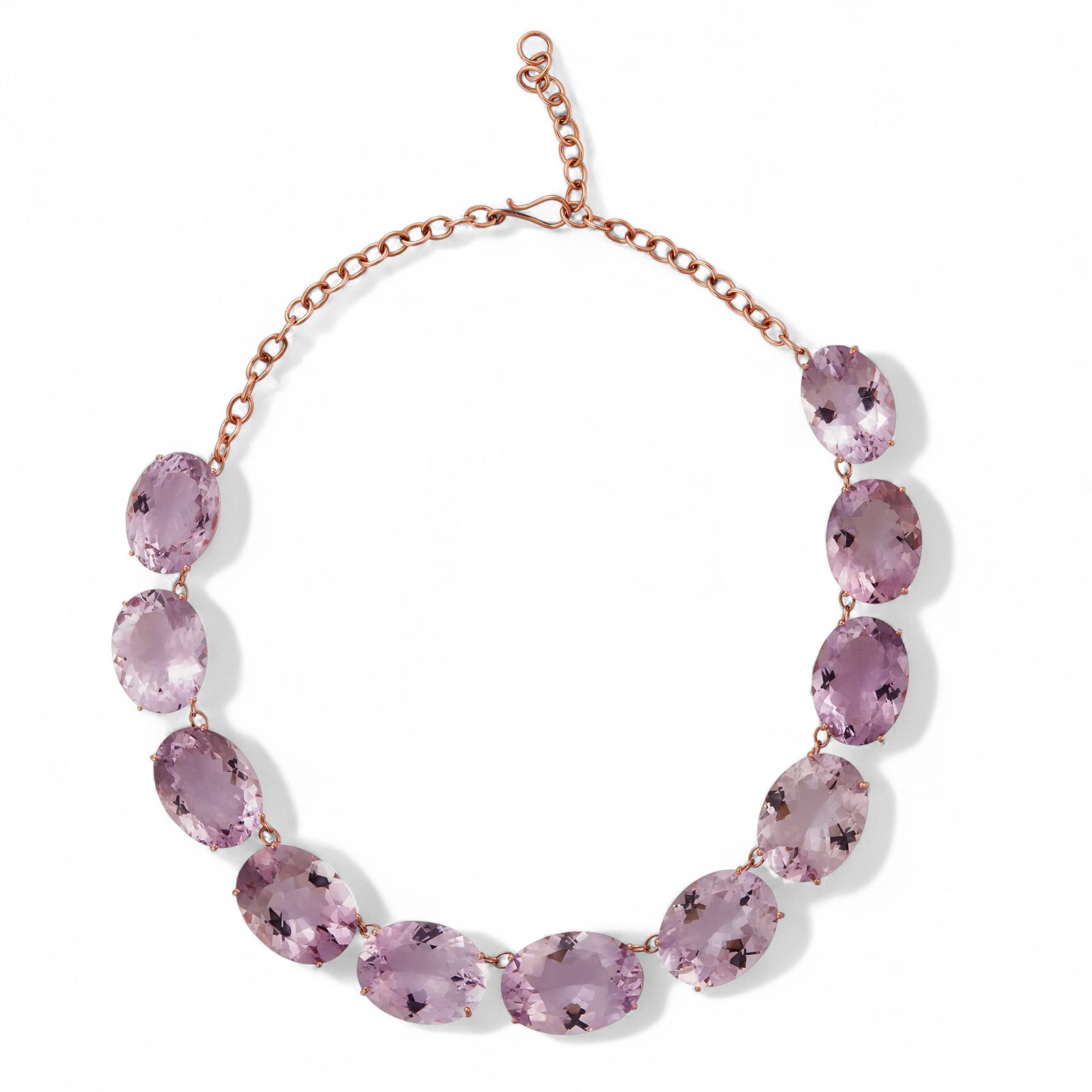 Elevate your jewelry collection with the Large Crown Pink Amethyst Necklace. Crafted from 18K rose gold, this necklace features a stunning 268 carats of pink amethyst that rests in an intricate crown setting. The adjustable 37-45CM chain allows for a perfect fit, making it the ideal accessory for any occasion.