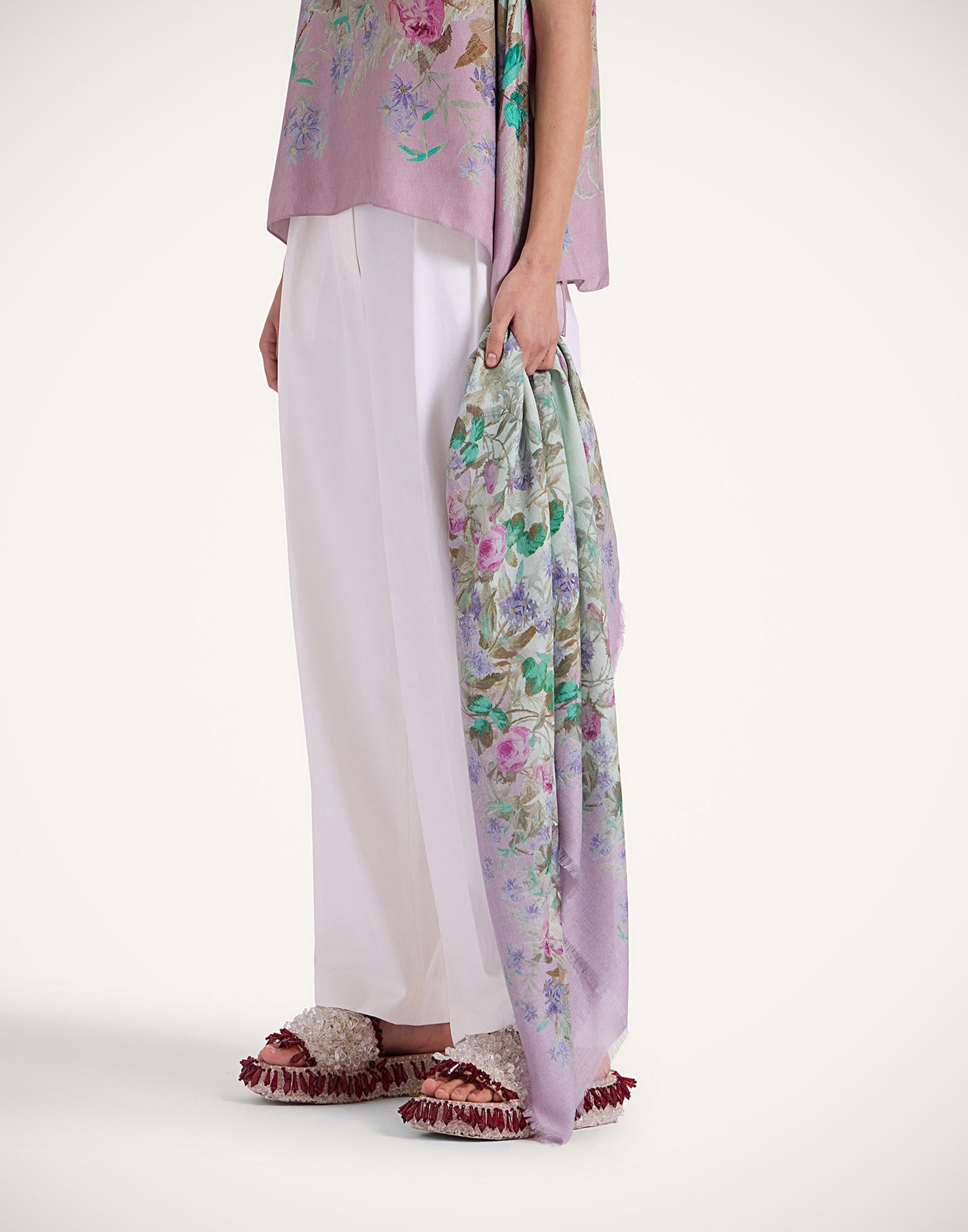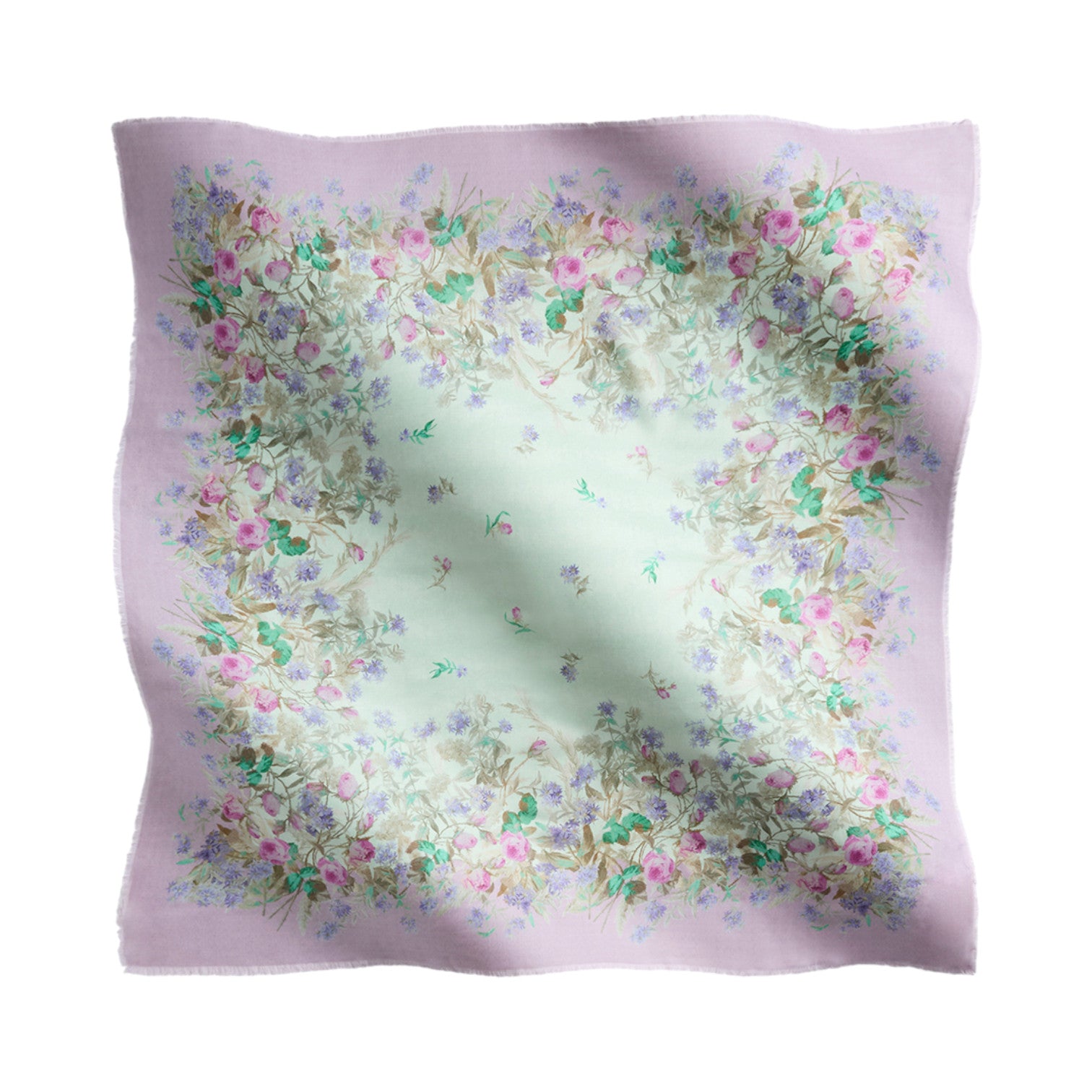 The Heath Placée Mint Foulard is La DoubleJ’s take on the ultimate Italian accessory—light, fluid, and effortlessly chic. Crafted in a luxurious modal–silk blend, this 120 x 120 cm square is finished with soft frayed edges and a beautifully placed floral print that moves from fresh mint to soft lilac tones. Wrap it around the neck, hair, wrist, or bag strap for instant dolce-vita ease.