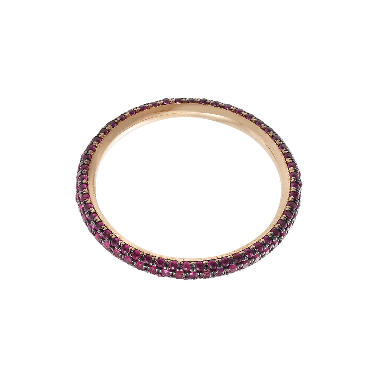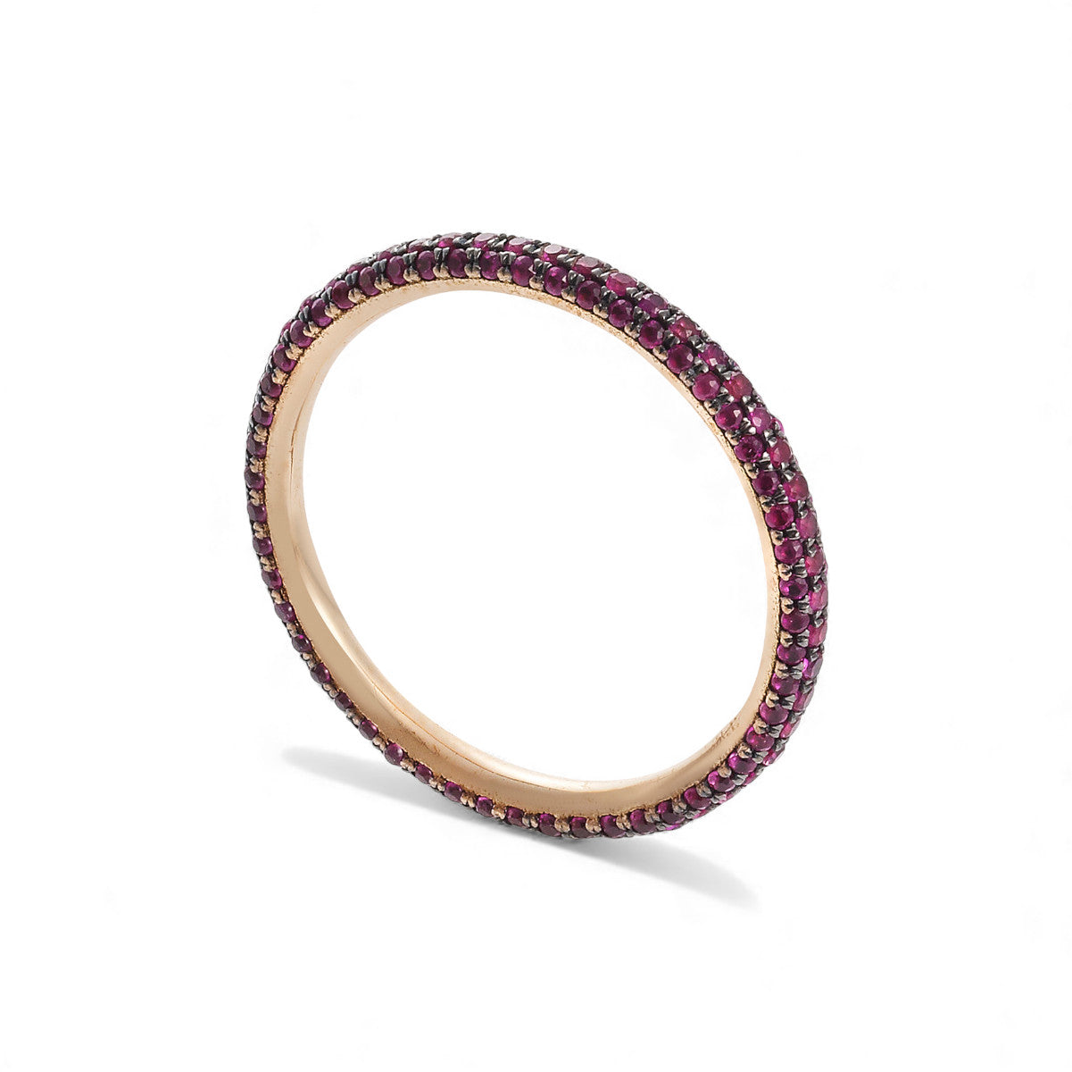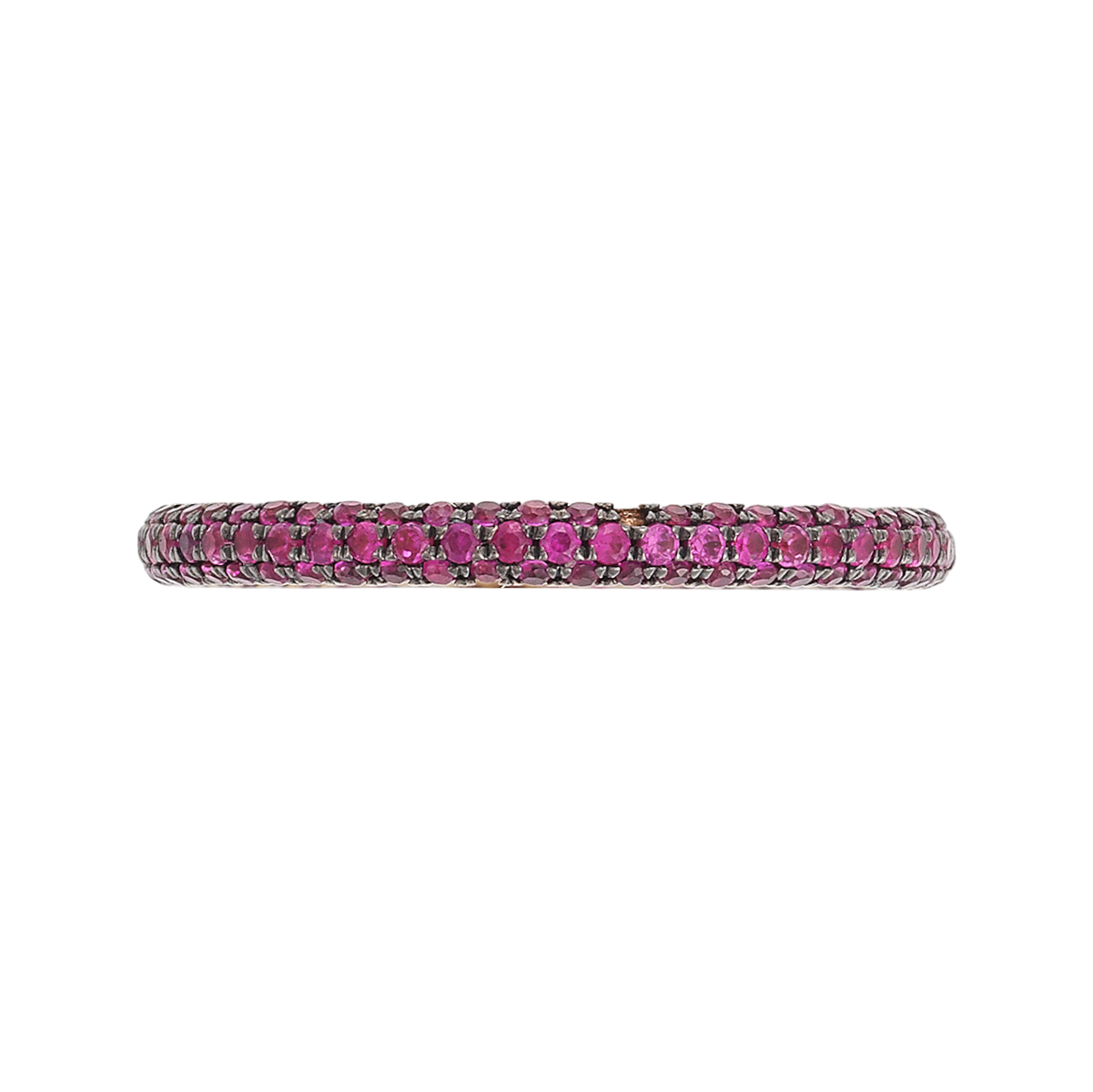 Our 18k rose gold Bull Bond ring is encrusted with three rows of sparkling rubies oxidized on the stones, totaling 0.89-carats for just the right amount of sparkle. Traditionally symbolizing enduring love, this handmade piece is the perfect way to mark a wedding anniversary or proposal.