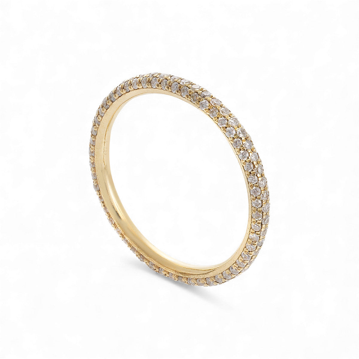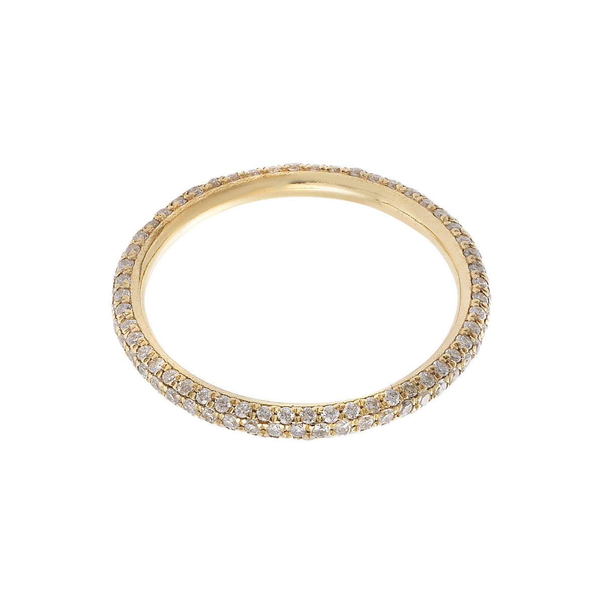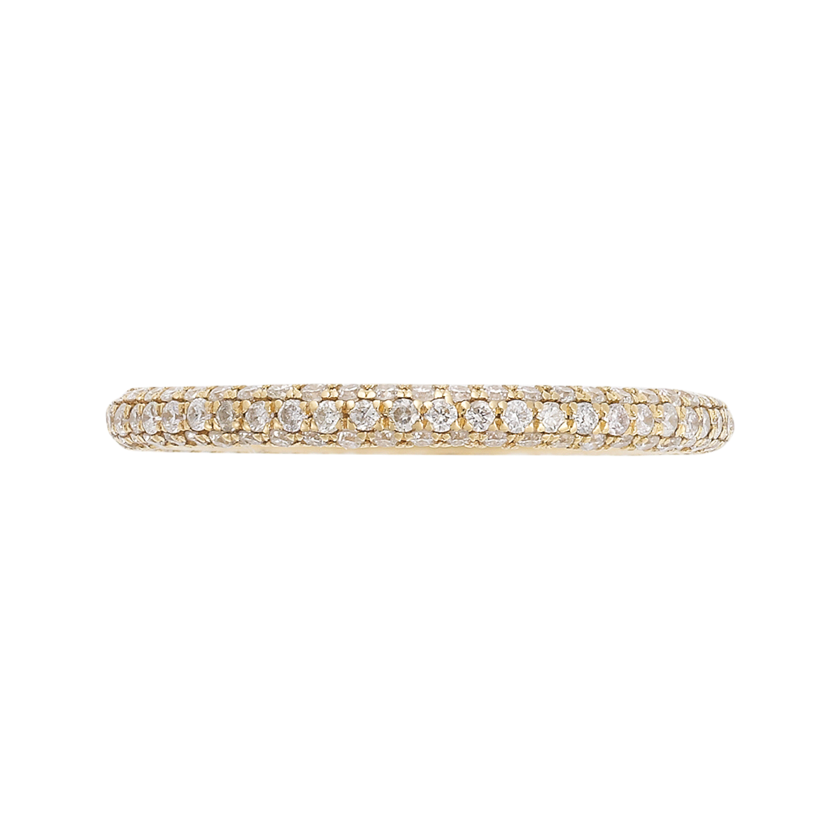 This beautiful 18k yellow gold Bull Bond Y-D ring from the classic Ileana Makri collection features three rows of dazzling white diamonds totalling 0.7-carats. Expertly handcrafted and traditionally symbolizing enduring love, this timeless piece is perfect for a special occasion like an anniversary or proposal.