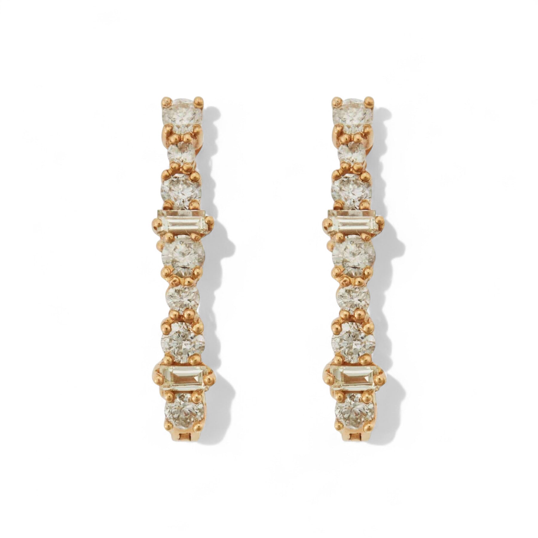 The Large Oval Rivulet Champagne Diamond Hoops by Ileana Makri embody understated glamour and fluid refinement. Expertly handcrafted in 18k yellow gold, these elegant hoops feature a seamless alternation of baguette and round champagne diamonds, creating a radiant play of light that dances with every movement. Their sculptural oval silhouette captures the essence of modern femininity — timeless, graceful, and effortlessly chic.