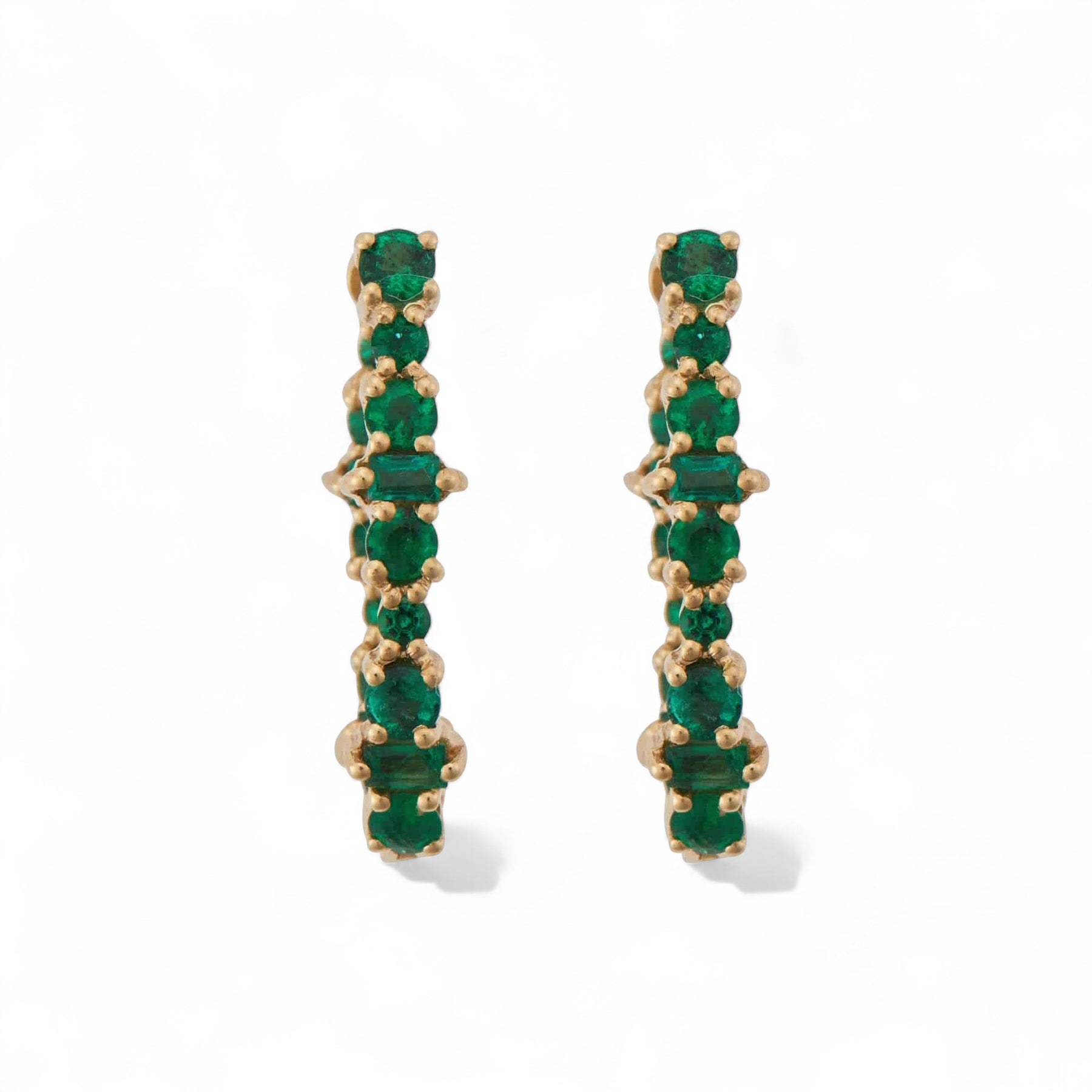 Graceful and refined, the Large Oval Rivulet Emerald Hoops by Ileana Makri bring a vibrant touch of elegance to any occasion. Handcrafted in 18k yellow gold, these striking oval hoops feature an alternating rhythm of round and baguette emeralds — each stone meticulously set to capture the fluid motion and brilliance of water. The perfect balance of sophistication and bold color, they are designed to shimmer with effortless luxury.
