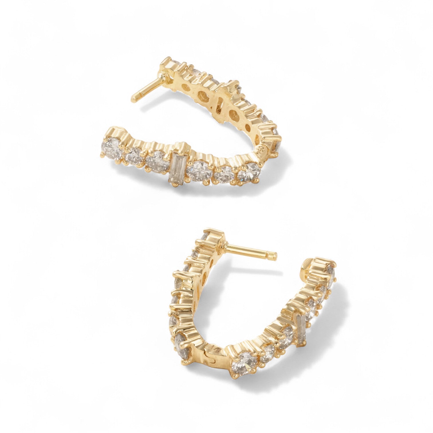 These stunning Oval Rivulet Hoops offer a statement-making addition to any ensemble. Crafted from radiant 18k yellow gold, they are adorned with a rivulet of baguette and round light champagne diamonds. Perfectly balanced between timeless sophistication and modern elegance, these Diamond Rivulet Spread Oval Hoops will shimmer for any occasion.