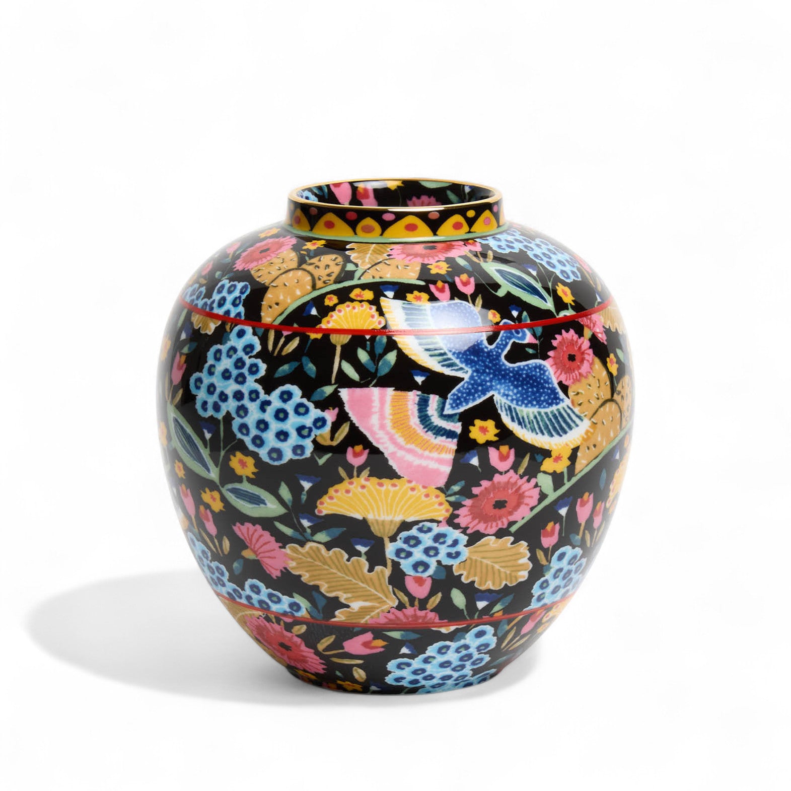 Explore Verona's porcelain legacy with this exquisite Colombo Black Small Bubble Vase. Meticulously handcrafted by the finest Italian artisans, it features a vibrant 18K gold trim, bold decorative lining, and super-saturated colors.