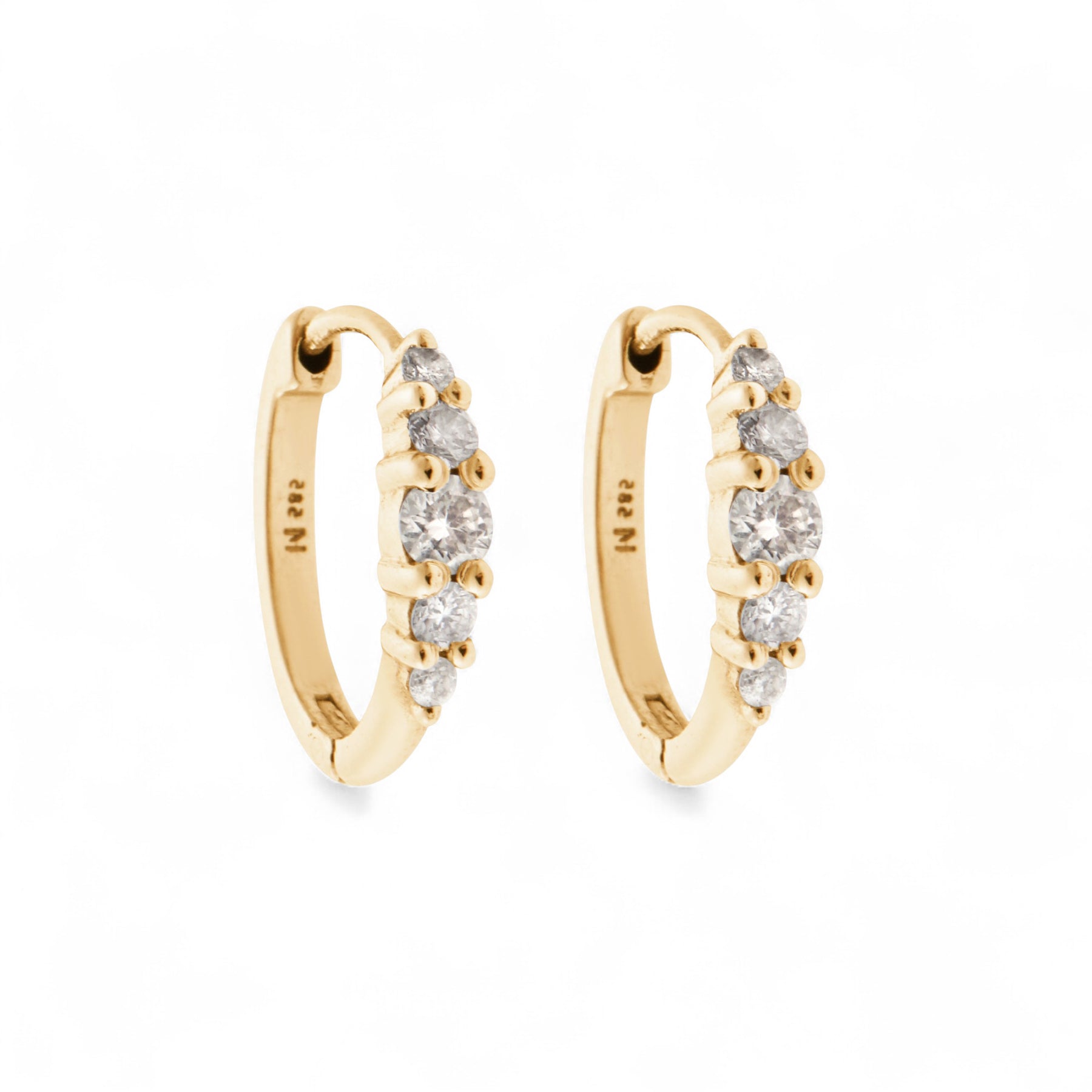 Elegant and beautiful, these Medium Oval Hoops shine bright with five diamonds handcrafted by artisans in 14k white gold. The light champagne diamonds add a unique touch to these exclusive hoops, sure to add a touch of sophistication to any look.
