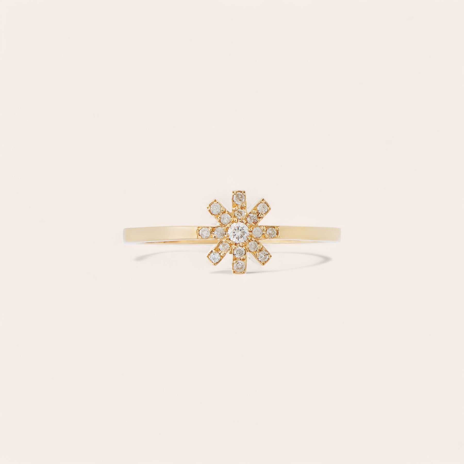 The Chaos Mini Ring captures the brilliance of Ileana Makri’s starburst motif in its most delicate form. Crafted in 9k yellow gold and set with 0.12 carats of light champagne diamonds, this refined band brings subtle sparkle to your everyday look. Perfect for stacking or worn solo as a modern talisman of light.