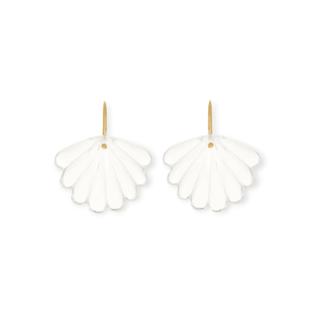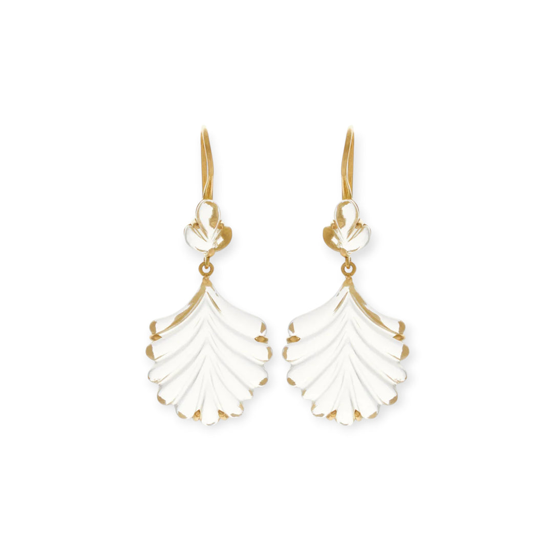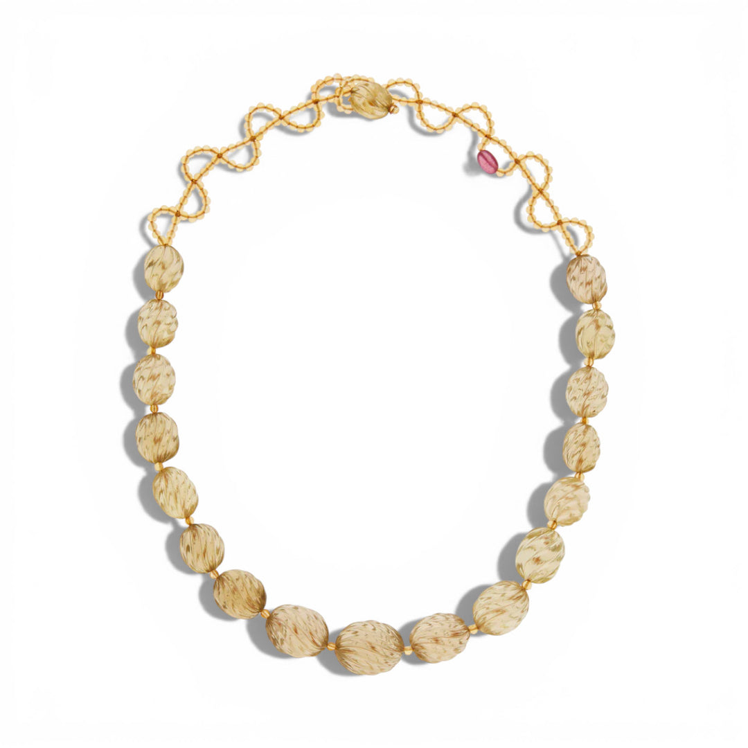 Maggoosh Fine introduces Margarita Chrysaki’s fine jewelry debut in 18K gold, where sculptural design meets tactile craftsmanship. The collection is defined by hand-carved stones—from clear quartz seashell drops and pendants to fluid botanical forms—set in solid gold and made to feel alive in motion. Expect luminous crystal quartz, peach moonstone, and rose quartz, alongside refined precious details such as pavé diamonds and aquamarines, all handcrafted by Greek craftsmen.
