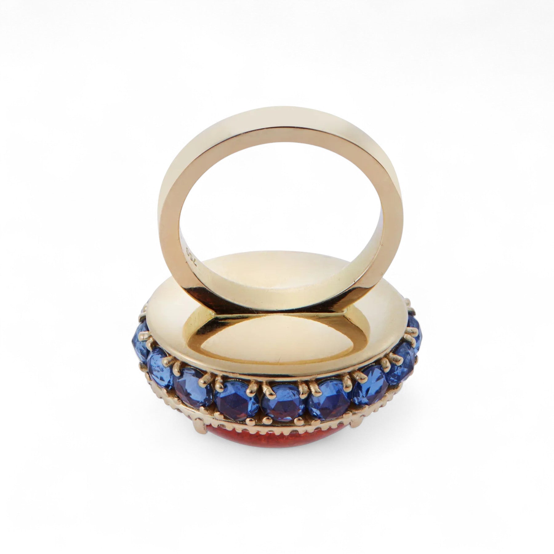 Discover the unparalleled elegance of our Spessartine Sunset Ring. Meticulously handcrafted in 18k Yellow Gold, this one of a kind ring showcases an exquisite Spessartine center stone, encircled by a dazzling halo of light brown diamonds and radiant blue rosecut sapphires all around the side. Enhance your jewelry collection with this unique piece.
