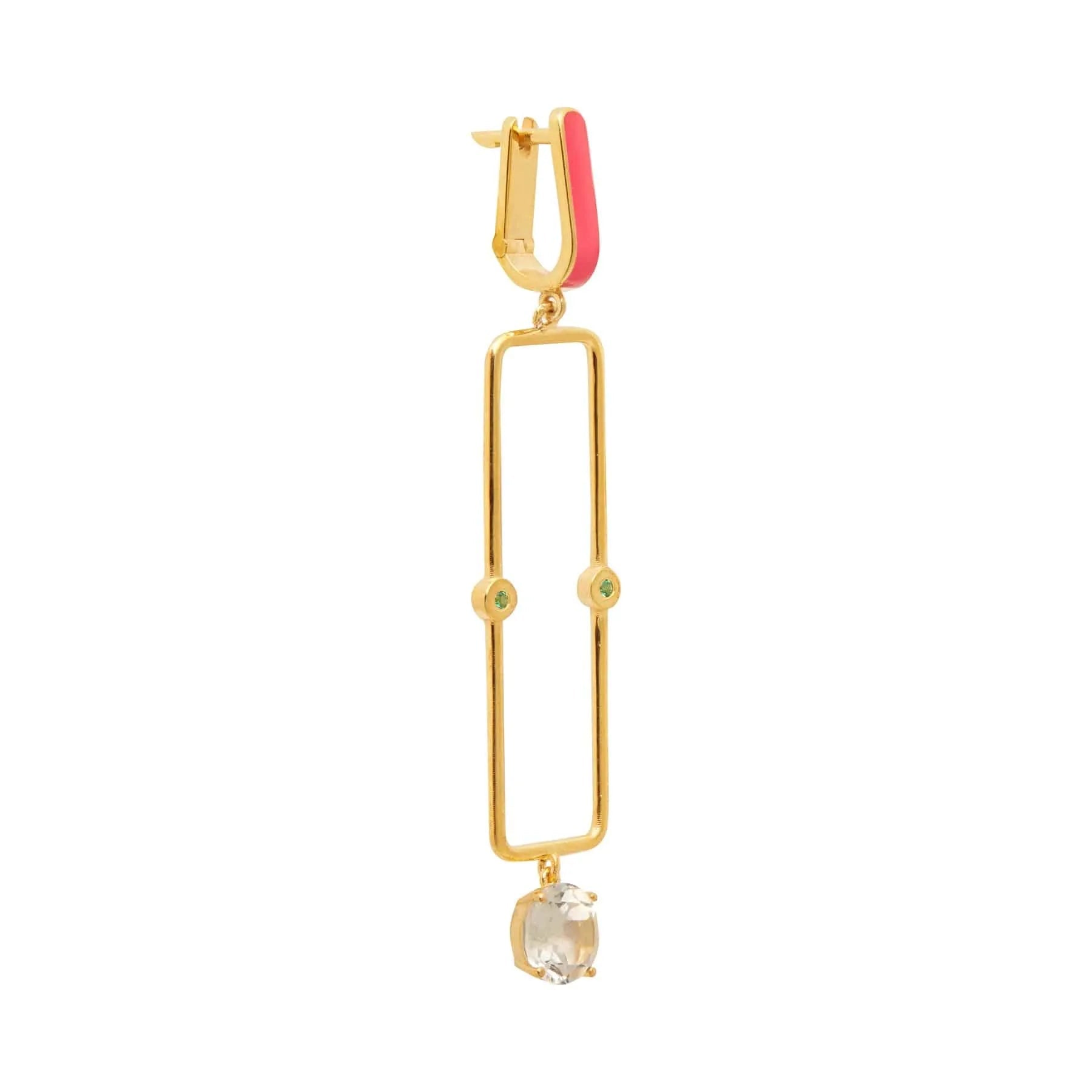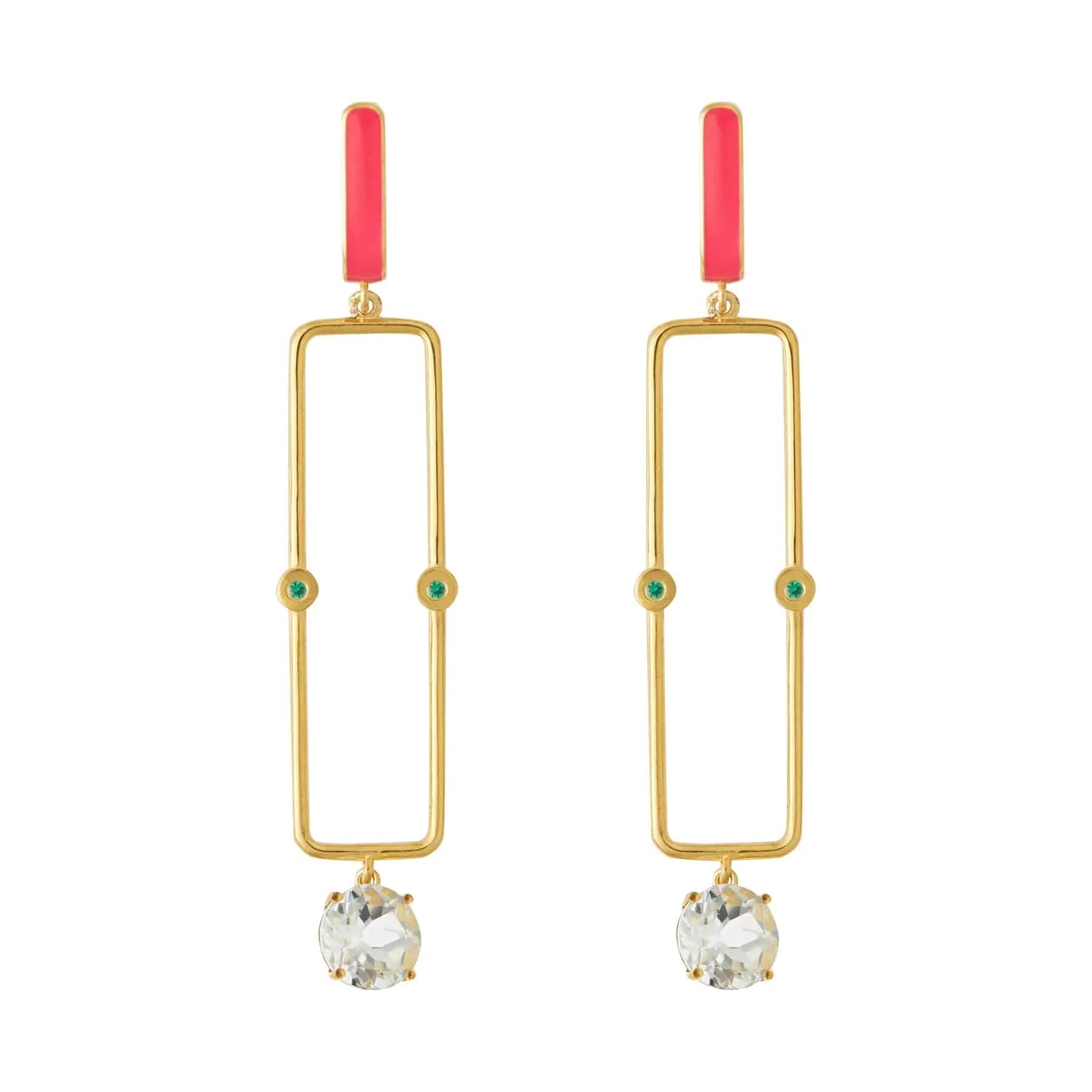 Add a touch of playful elegance to your outfit with our handmade White Topaz Long Bar Earrings! These sterling silver earrings feature 18k gold accents, bold neon pink enamel, and sparkling green crystals. Complete your look with the dazzling white topaz drops.