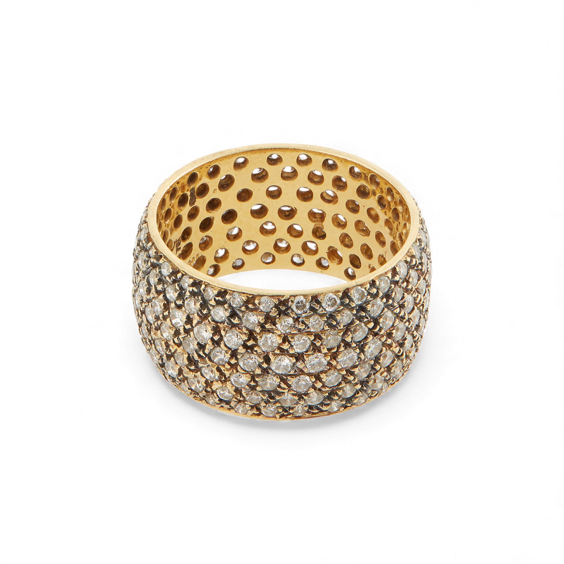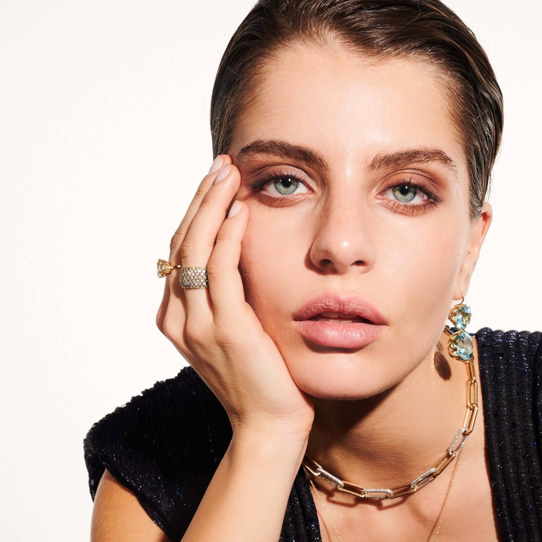 A timeless expression of sophistication, Ileana Makri’s Bond Ring is handcrafted in polished 18k yellow gold and fully pavé-set with brilliant champagne diamonds totaling 2.38 carats. Its bold, sculptural cigar-band silhouette radiates strength and elegance, designed to capture light from every angle. Symbolizing enduring love and connection, this exquisite piece makes a striking choice for marking life’s most meaningful moments—from weddings to anniversaries and beyond.