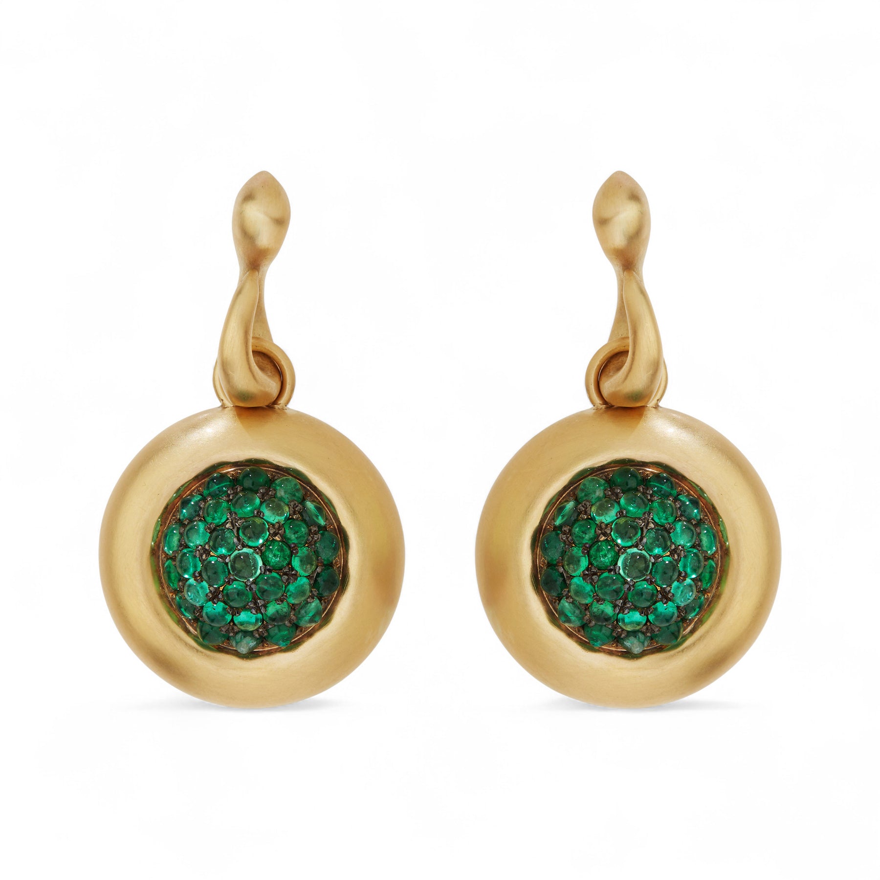 Experience indulgence with our Emerald Caviar Earrings Large. Embellished with 3.52-carat cabochon emeralds and adorned in satin-finished 18k yellow gold, these earrings exude an air of sophistication and exclusivity. Elevate your style with these lavish earrings.