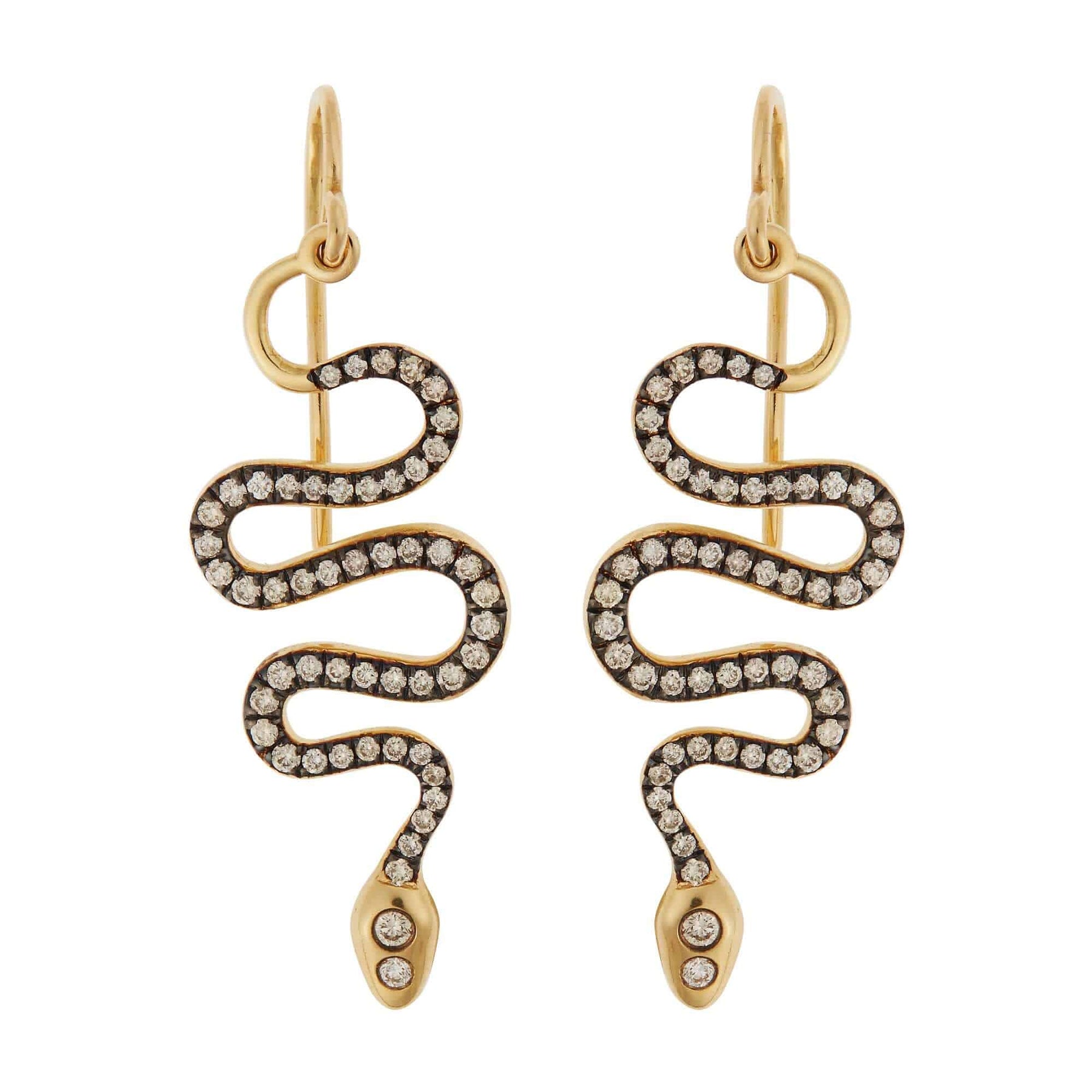These exquisite Black Mamba Earrings are crafted with expertise from 18k yellow gold with an oxidization technique on the stones, setting off the captivating champagne diamonds. A tribute to nature, these earrings embody the majesty and mystique of the snake with luxurious craftsmanship.