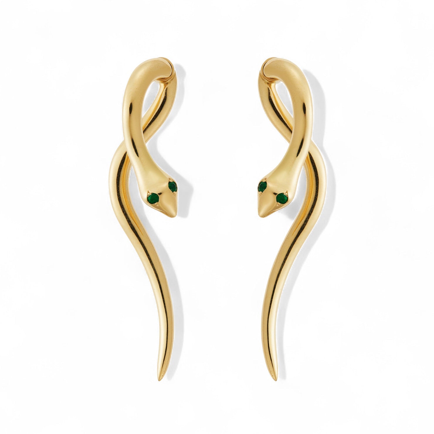 The Boa Earrings are one of Ileana Makri’s most iconic designs — a sculptural interpretation of the serpent, symbolizing transformation and vitality. Expertly handcrafted in 18k yellow gold, each earring coils gracefully along the ear, its eyes set with vivid emeralds that glimmer with life. Ingeniously designed with a clasp hidden in the tail, these earrings hug the earlobe in an elegant, fluid silhouette that feels both sensual and empowering.