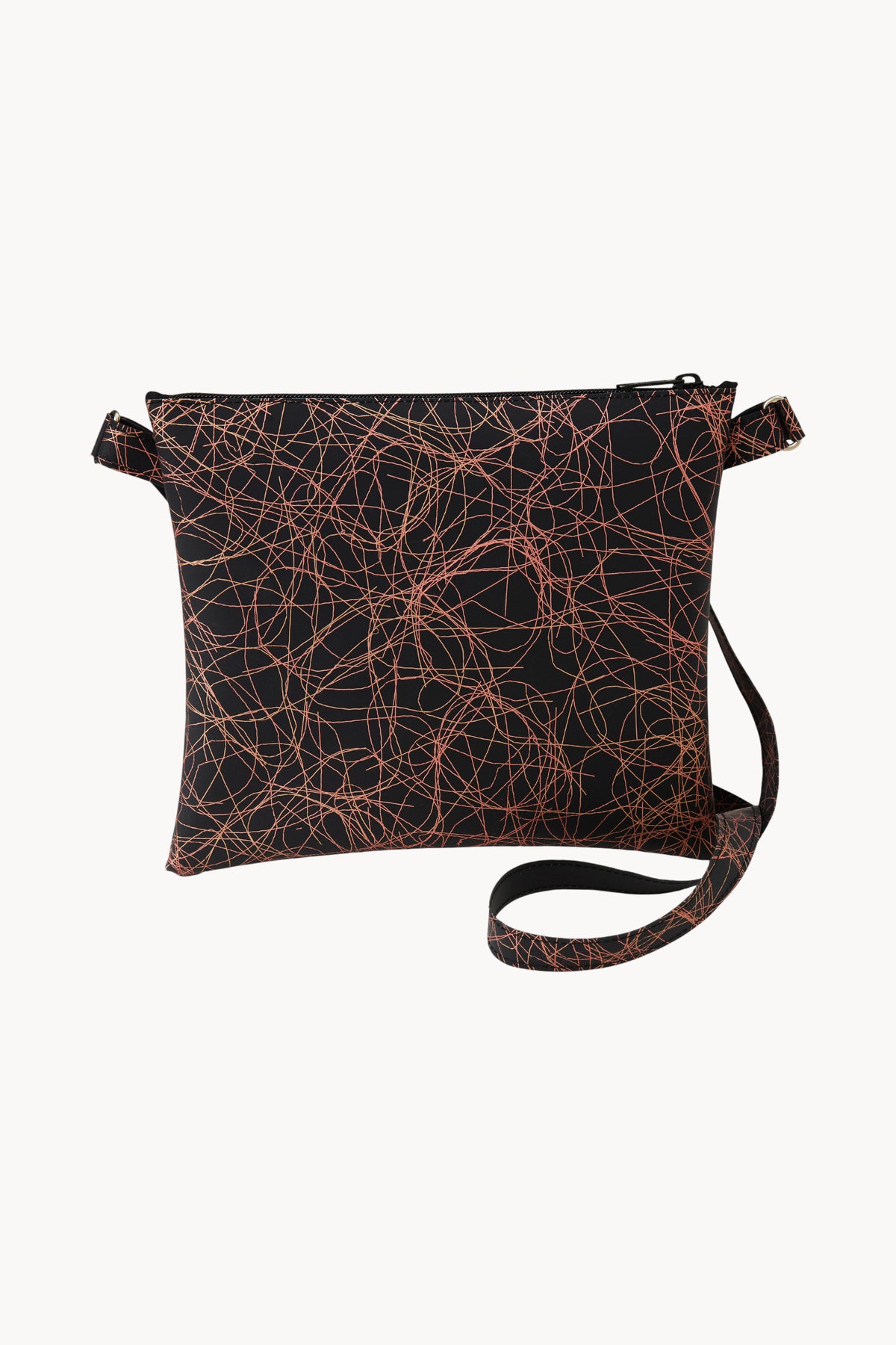 The Luisa Cevese Riedizioni Pocket Bag – Medium in Metallic Threads – Pink on Black is a compact accessory that stands out with its shimmering, textural finish. The black base is accented with sparkling pink metallic threads, creating a bold contrast that adds a modern, artistic touch. Lightweight and easy to wear with its long strap, this small pocket bag is perfect for carrying daily essentials while bringing a hint of sophisticated shine to your look.