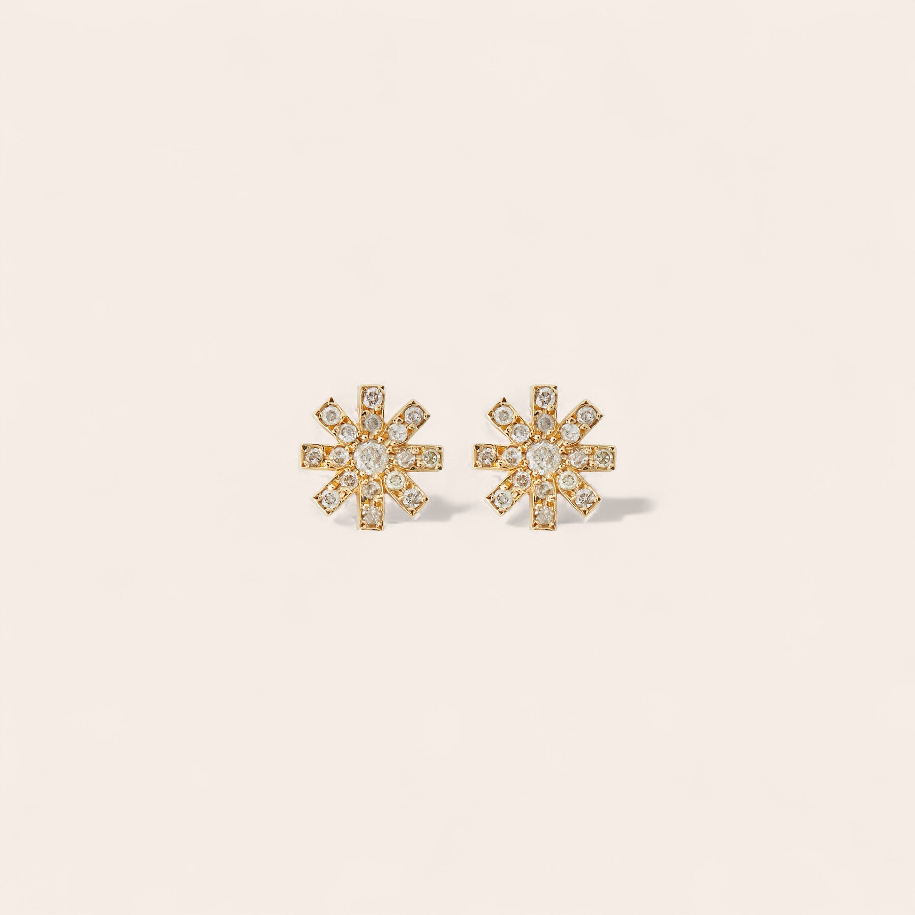 A burst of light in miniature form. The Chaos Studs are crafted in 9k yellow gold and set with light champagne diamonds, arranged in Ileana Makri’s signature starburst motif. Delicate yet striking, they bring effortless radiance to your everyday ear story — designed for stacking, layering, or simply shining on their own.