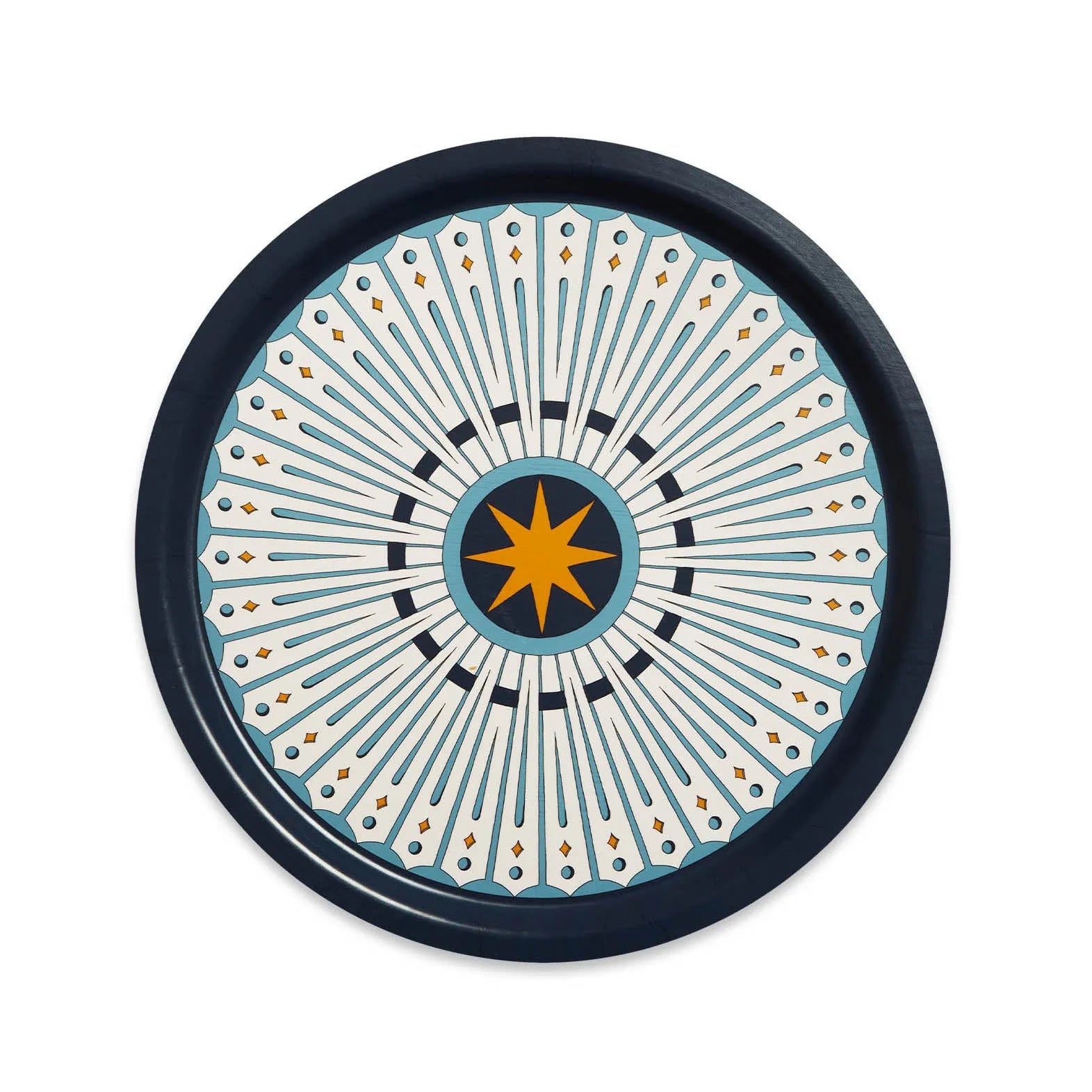 Add a pop of joyful prints to your hosting game with our Feria Midnight Round Printed Tray. Made from FSC certified birchwood, it's perfect for Aperol Spritz or any hosting needs. Use it for pizza or as a chic catch-all for your bathroom clutter. The possibilities are endless!