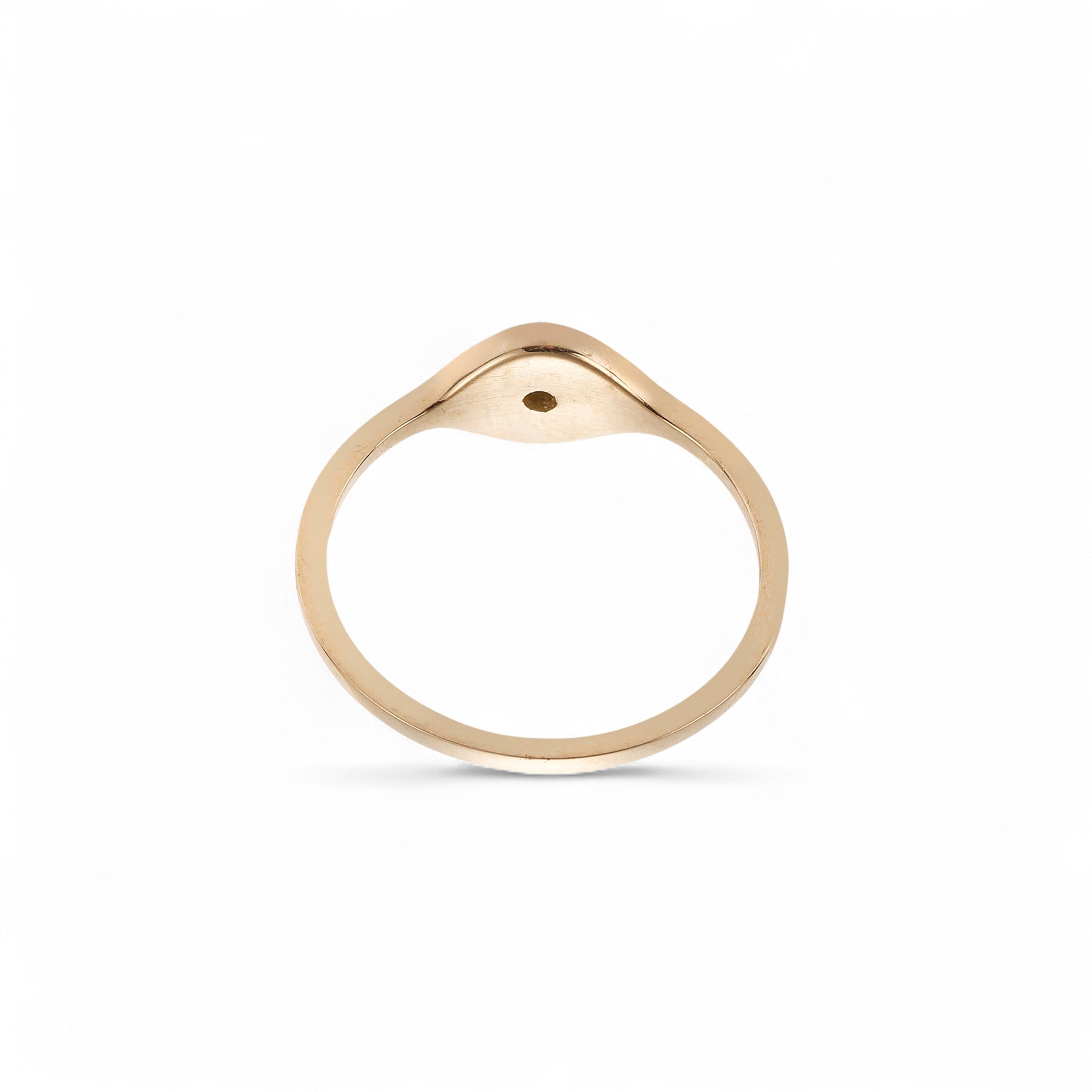 This sweet 18k rose gold ring is shaped into a delicate Evil Eye, set on the outline with white diamonds and a central blue sapphire. Wear it every day as your good luck trinket.