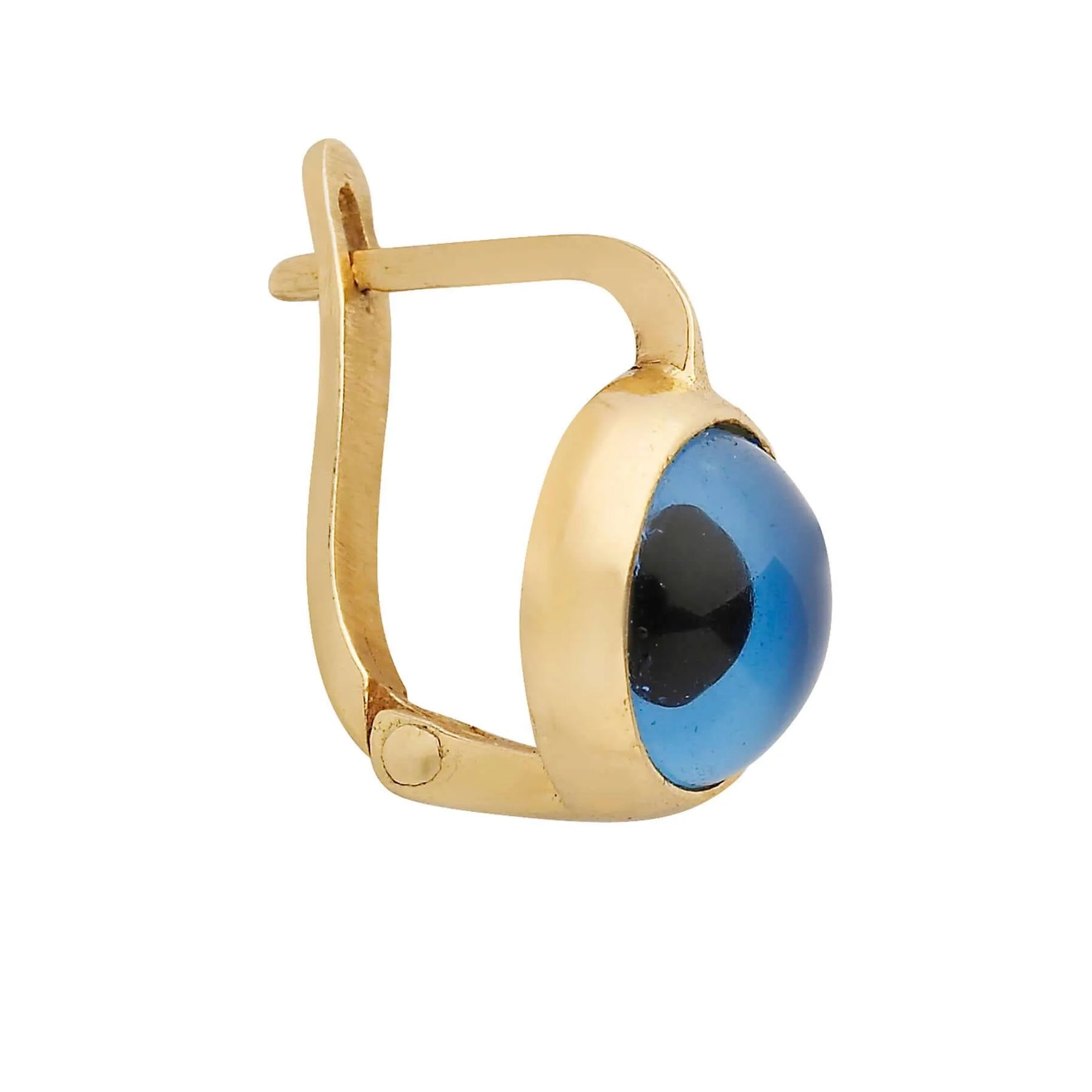 Protective and chic, these Evil Eye earrings are a timeless symbol of good fortune and style. Handcrafted in 9k yellow gold, each piece is set with a striking blue and black glass cabochon eye motif, believed to ward off negative energy. Lightweight and versatile, they’re perfect for everyday wear or layering with other earrings for a bold ear stack.