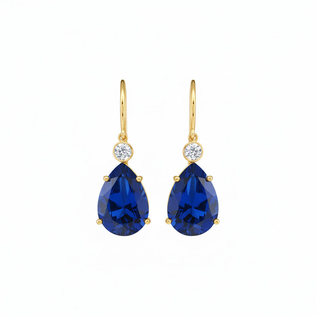 Bold yet elegant, the Single Diamond Crown Drops in Kyanite are crafted in 14k gold and set with deep blue pear-cut kyanite gemstones. Their intense hue and luminous depth evoke a sense of quiet strength and refined sophistication. A timeless silhouette elevated with rich, vibrant color—perfect for statement dressing or everyday luxury.