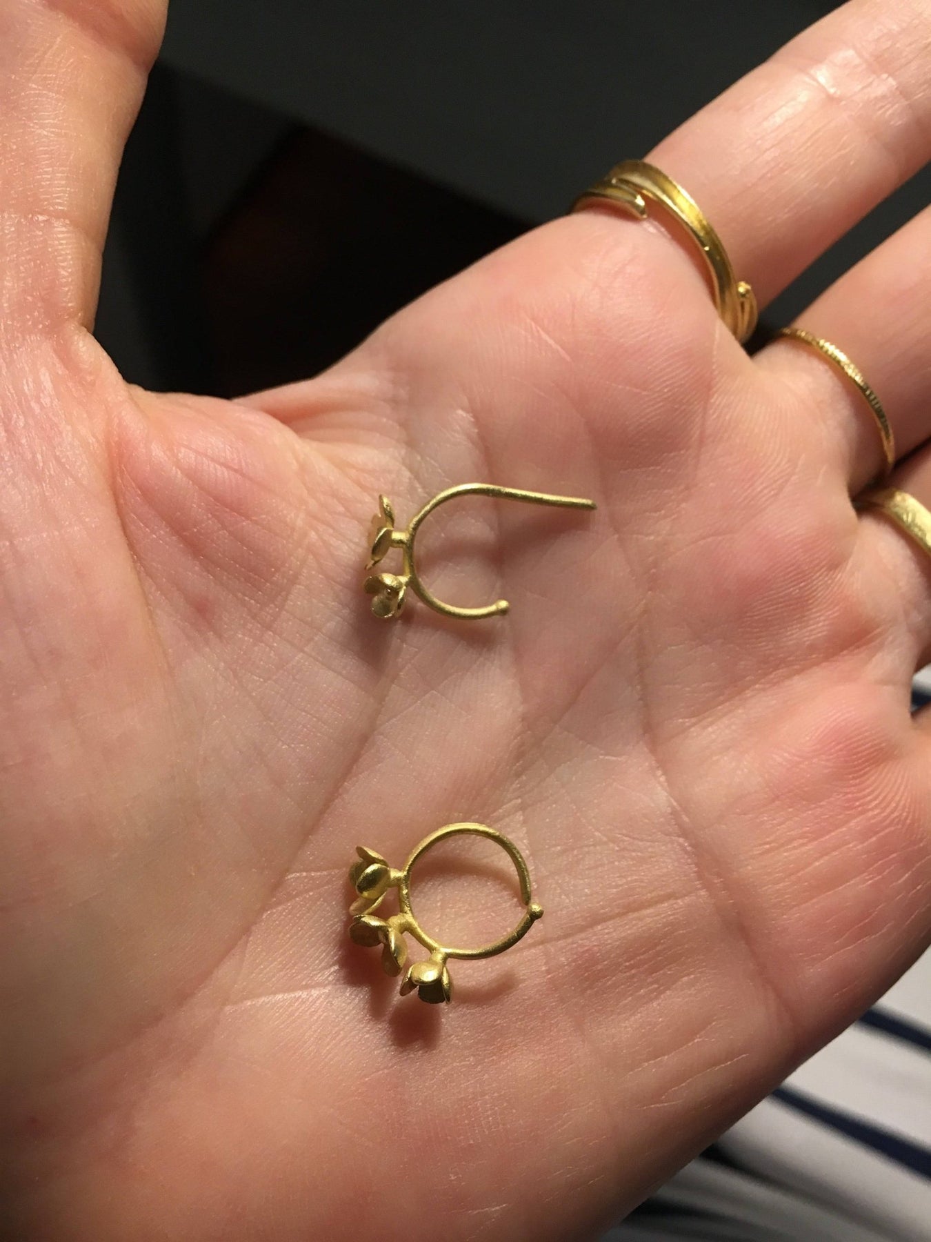 Open your jewellery collection to the elegance and luxury of the Blooming Mini Hoop 3 Flowers. Handcrafted from exquisite 18k gold, this single hoop features three hand-cast blooming flowers, radiating the glamour and beauty of fine jewellery. Adorn yourself with timeless sophistication and make a statement of exquisite taste.