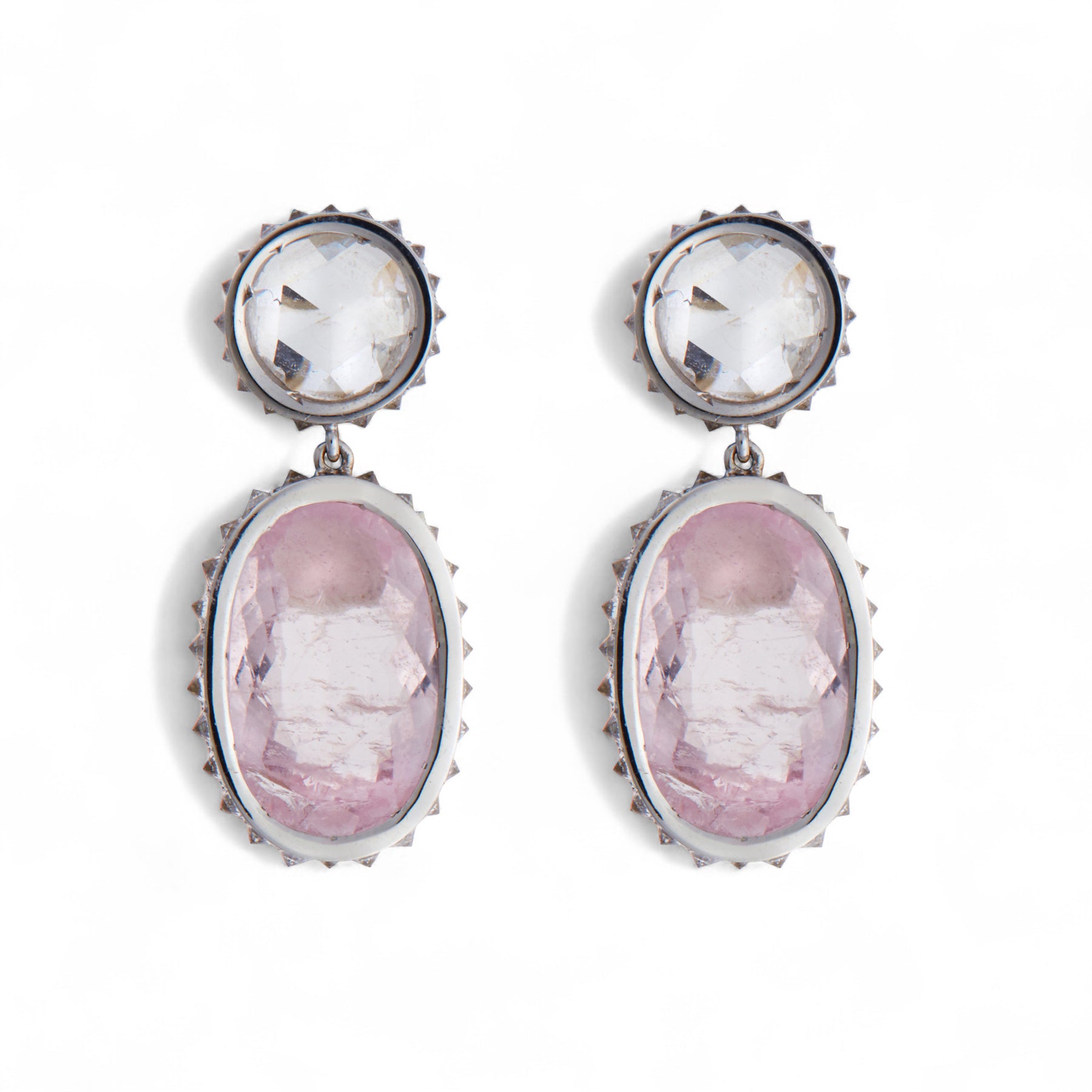Delicately balanced between strength and softness, Ileana Makri’s Celeste Morganite Drop Earrings radiate refined femininity. Handcrafted in 18k white gold, each earring features a luminous oval-cut morganite totaling 6.95 carats, elegantly suspended from a rose-cut diamond stud. The shimmering white diamonds (2.32 carats) illuminate the soft pink tones of the morganite, creating a captivating play of light and color. A timeless statement of grace and craftsmanship, these earrings are the epitome of understated luxury.
