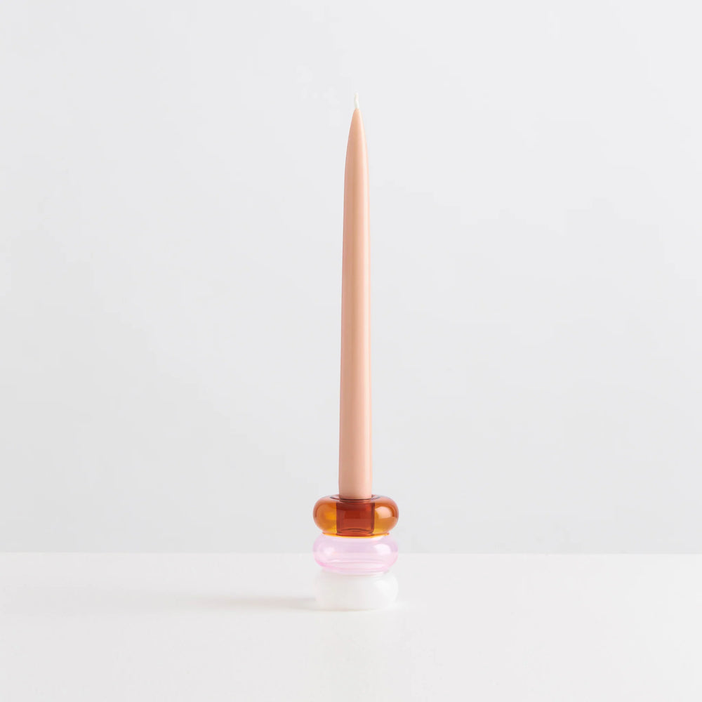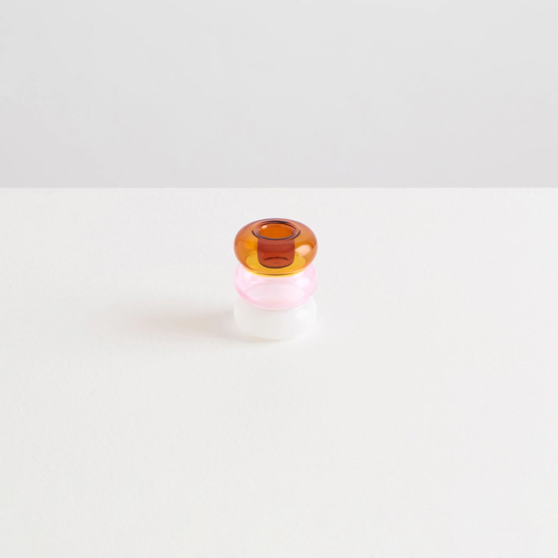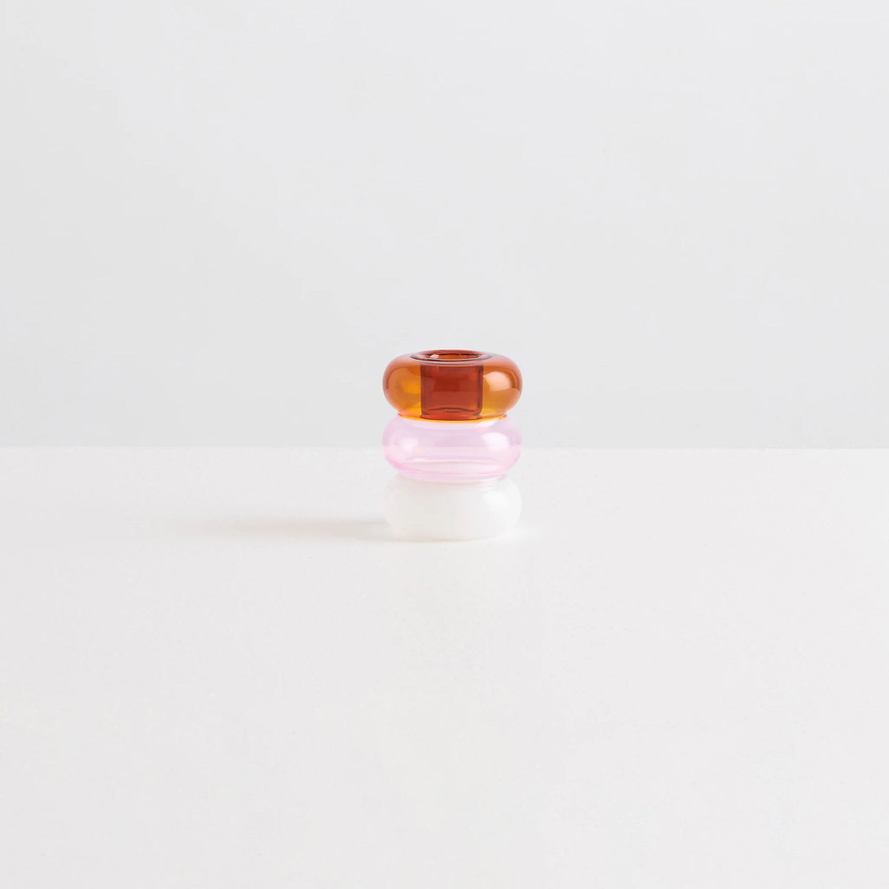 Petite Pauline is a playful stack of teal, azure and mint glass bubbles. All it needs is a candle to complete its airy silhouette! This candle holder doubles as a lucky charm, so we recommend making a wish before you light the candle that will sit on top.