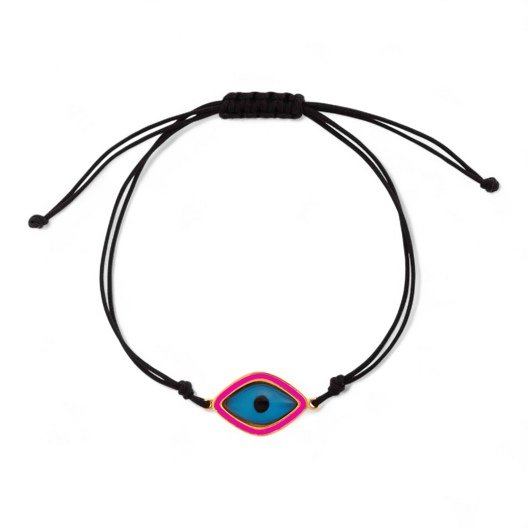 Delicate and modern, the Enamel Oval Eye Cord Bracelet is handcrafted from sterling silver and plated in 18k yellow gold. It features an oval glass eye charm outlined in vibrant enamel, strung on an adjustable black cord for a comfortable, easy-to-wear fit.