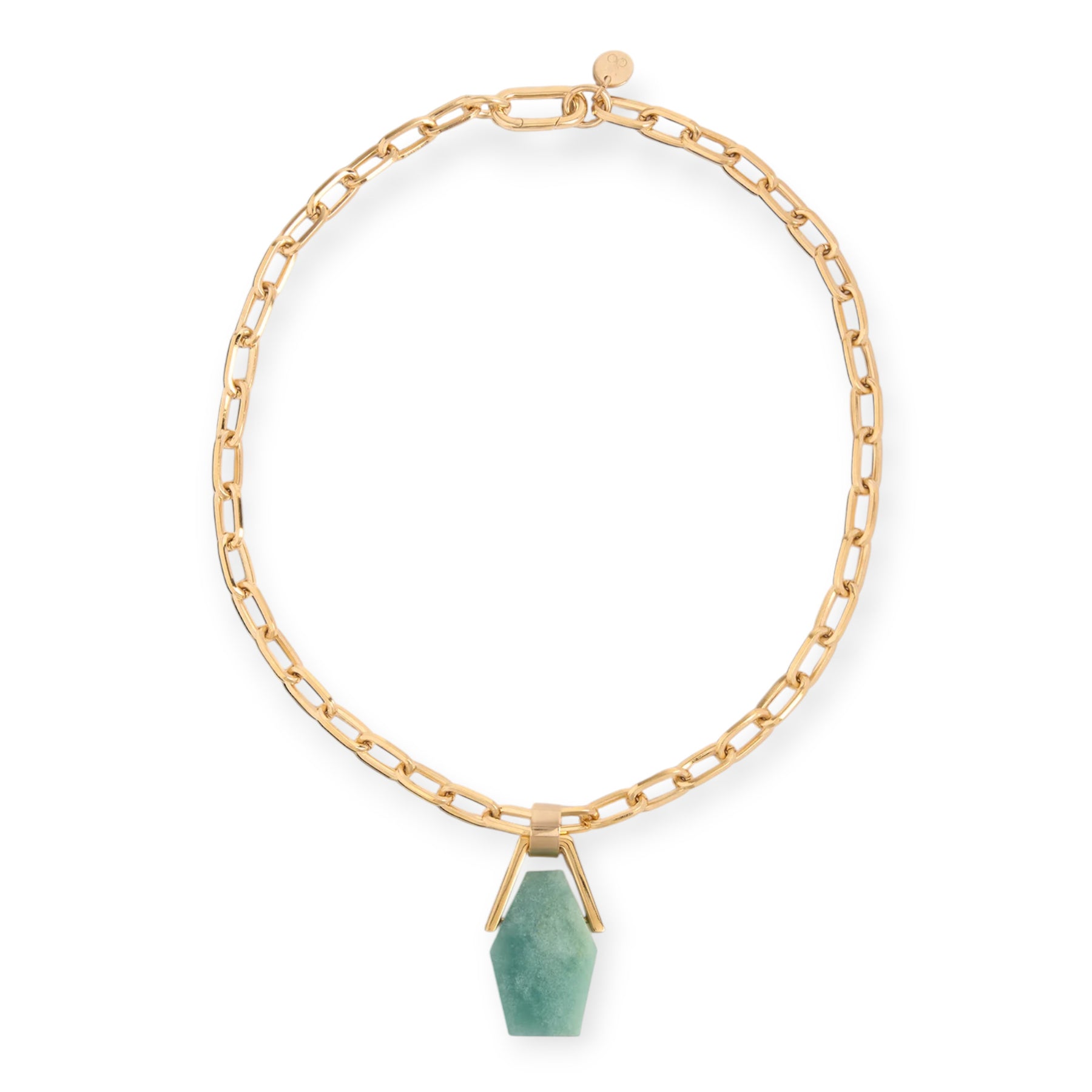 Crafted from a vibrant slice of amazonite—a stone linked to truth, clarity, and communication—this La DoubleJ pendant sits like a joyful little portal over the heart. Wear it alone for a striking pop of color or layer it with your favorite chains for a more expressive look. A precious piece to treat with love, amore.
